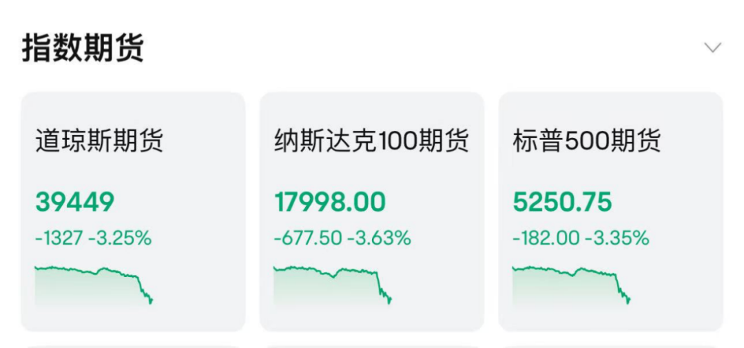 炒股第一步,先开个股票账户 针对美国的“对等关税”,中国发出反制措施。经国务院批准,国务院关税税则委员会公布公告,自2025年4月10日12时01分起,对原产于美国的所有进口商品加征34%关税。 4月4日美股盘前,美股期货持续下挫,道琼斯指数期货、纳斯达克100指数期货、标普500指数期货均跌超3%。 截至记者发稿时,道琼斯指数期货下跌1327点,跌幅3.25%;纳斯达克100指数期货下跌677.50点,跌幅3.63%;标普500指数期货下跌182点,跌幅3.35%。 ![]() 美股大型科技股盘前大跌。特斯拉、亚马逊跌超7%,英特尔、英伟达、苹果跌超6%,Meta、英伟达跌超5%,微软、谷歌跌超4%。 欧洲股市方面,欧股持续下跌。欧洲斯托克50指数跌5.3%,斯托克欧洲600指数跌5%,英国富时100指数跌4%,法国CAC40指数跌4.7%,意大利富时MIB指数跌近8%。 国际原油价格跳水,布油日内重挫超8%,跌破64美元/桶。现货黄金短线快速拉升,站上3130美元/盎司。 (文章来源:上海证券报) |