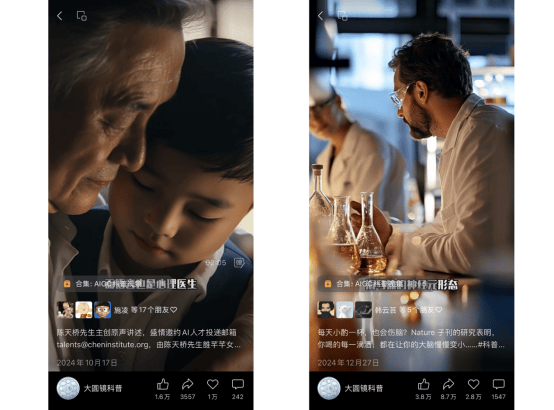 天桥脑科学研究院选择AIGC技术作为科普创新路径,主要考虑到传统科普形式难以有效触达青少年群体,而AI生成技术能够将抽象科学概念直观呈现,同时大幅提升制作效率。雒芊芊表示,研究院未来将推出AI加持的高端科学专访视频,并筹备国际科普奖项以鼓励个人创作者利用AI进行科普创作。 值得一提的是,“大圆镜科普”已借助AI翻译配音技术推出英语、西班牙语版本内容,短短两个月在国际平台吸引数万海外粉丝,展现中国科普内容的全球影响力。