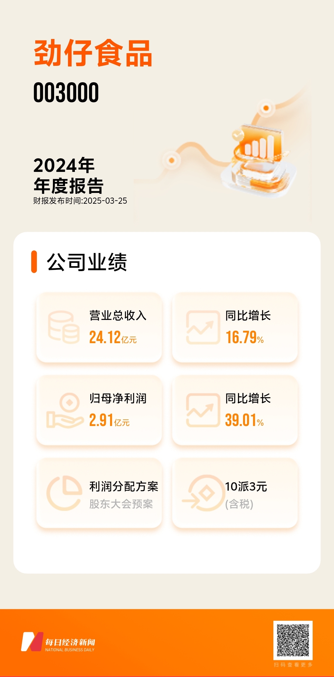 图片来源:由每经财报智能体一键生成 回应大手笔分红计划2024年,劲仔食品计划现金分红金额超过了净利润的六成,高于行业平均水平。 现场,《每日经济新闻》记者就此提问:“公司高比例分红是否影响产能扩张和研发?” 丰文姬表示,公司的现金流是非常好的,公司账上资金的充裕程度以及整个生意模式的健康程度也是非常高的,另外,公司资产负债率很低,所以,从公司经营发展的角度来讲,用于生产经营、投资扩产等方面的资金都会有相应的预留。“肯定是以公司的发展为第一要务。”她总结道。 对于如何平衡短期的回报股东需求和公司长期发展的资金需求,丰文姬表示,站在企业的角度来说,核心还是把经营做好,把质量、核心竞争力做起来。 “在过去三年中,大家会讲价格战、讲质价比⋯⋯但是熟悉劲仔食品的朋友都知道,公司过去几年一直在走升级这条路。” 丰文姬表示,在未来的需求中,辣味食品还是存在结构性机会的。 劲仔食品的国际化战略取得了一定的成果。2024年,公司海外收入同比增长近100%,规模突破3000万元,覆盖东南亚、日韩、欧美等市场。 丰文姬介绍,东南亚是当前重点突破区域。另外,公司素食产品在日本和韩国也很受欢迎。 她还介绍,美国市场在公司总业务中的占比相对来说较小。“相信在2025年,(公司)整个海外市场的增速是超过国内市场的。” |