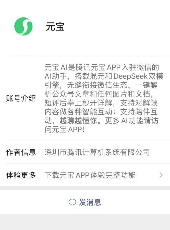 在丁冬财经看资讯行情,选丁冬财经证券一站式开户交易>> 21世纪经济报道记者白杨北京报道 元宝正式入驻微信了,这次是以微信好友的形式。 现在,用户在微信搜索“元宝”,就能添加“元宝”为好友,然后可以与其聊天。 ![]() 官方介绍显示,微信中的“元宝”是腾讯元宝app入驻微信的AI助手,搭载了混元和DeepSeek双模引擎,可以一键解析公众号文章和任何图片和文档。 ![]() 据21世纪经济报道记者了解,近一个月前,微信就已经在测试该功能,产品名称是“元宝红包封面助手”。当时,用户与它对话,回答内容都是链接分享的形式呈现。 现在,“元宝红包封面助手”已经更名为“元宝”。不过如果你此时添加元宝,会发现一个小bug,在“元宝”进行用户服务及隐私保护提示时,它显示的还是元宝红包封面助手的服务协议及隐私政策。 ![]() 与之前相比,现在的“元宝”能力有所进化,对于用户提出的问题,它都能用文字直接进行简短回答,更详细的内容则仍是以链接分享形式呈现。 ![]() 据记者测试,目前微信中的“元宝”只能解析公众号、文档和图片,不支持视频和音频。另外,它具备联网功能,可以获取最新的消息,在面对复杂问题时,也可以自动触发思考模式。 借助微信场景,“元宝”变得更像人了,比如它在回复时,聊天框也会显示“对方正在输入……”。但在能力方面,仍有进化空间,比如答复内容不再需要点击链接跳转到其他页面,用户体验会变得更好。 在业内看来,与之前微信单独开发“AI搜索”入口不同,这次元宝是真正嵌入到了微信当中,相当于给13亿用户添加了一个共同好友,这或帮助元宝app站上全新的高度。与此同时,外界也对微信Agent有了更多期待。 (文章来源:21世纪经济报道) |