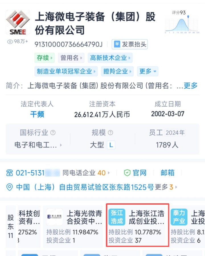 9月24日,光刻机板块持续活跃,焦点股张江高科(600895.SH)再度涨停,实现两连板,截至收盘报50.78元/股,股价创历史新高。盘后,张江高科发布股票交易风险提示性公告称,公司近期主营业务无重大变化,主营业务为张江科学城的产业空间载体建设运营以及主导产业投资。公司基本面没有重大变化,不存在应披露未披露的重大信息。 据了解,EUV光刻机是制造7nm以下芯片的核心设备。随着AI技术加速发展,先进工艺产能(7nm及以下)持续扩张,EUV光刻机需求扩大。 天眼查信息显示,张江高科通过全资子公司上海张江浩成创业投资有限公司持有上海微电子10.78%的股权,初始投资额约2.23亿元。 ![]() 科创投资频频,从“房东”变“股东” 公开资料显示,张江高科主要专注张江高科技园区开发运营,形成生物医药、房产物业、通讯信息及海外投资四大产业集群。 值得注意的是,除了产业园区的开发运营,近年来张江高科还积极进行科创投资,走上了“房东+股东”的赛道,公司也因此称为“科技投行”。 2025年半年报显示,上半年公司营收17.04亿元、归母净利3.69亿元,分别同比增长39.05%、38.64%;投资收益3.26亿元,同比增长336.75%,主要受益于持有的股权金融资产公允价值提升。 21财经·南财快讯记者梳理发现,张江高科投资版图涉及半导体、人工智能、生物医药等多赛道,其中在半导体产业链的布局尤为密集。 例如,公司通过张江燧锋基金,出资163.59万元投资芯朴科技(上海)有限公司,持股7.15%。据悉,芯朴科技是一家5G射频芯片研发商,成立7年来累计完成6轮融资,单笔融资金额最高过亿元,今年年内已完成了B轮。 同样是通过该基金,公司还斥资2500万元,投资上海精积微半导体技术有限公司,持股5.44%。Wind数据显示,该公司为精测电子的子公司,2025年上半年业绩亮眼,实现净利润6929.37万元,同比增长570.7%;营业收入8389.98万元,同比增长3983.12%。 此外,芯驰半导体、擎茂微、中茵微电子等半导体企业的参股股东中也有张江高科及其参股产业基金的身影。 值得一提的是,除了细分赛道的初创企业,张江高科还直接或间接持有多家明星企业的股份。例如,在智驶汽车方面,其与上汽集团、阿里巴巴等公司共同投资智己汽车,通过股权链最终受益股份为13.39%。