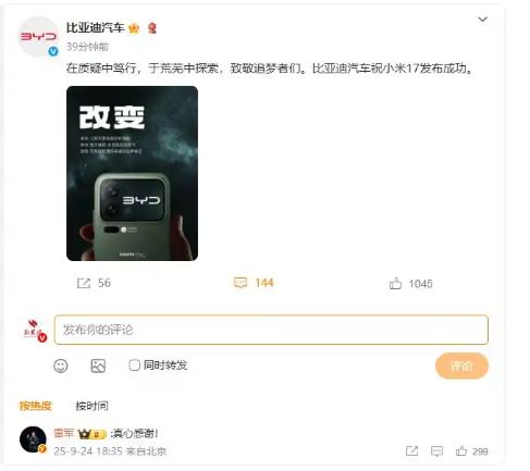 全新妙想投研助理,立即体验 9月25日,小米集团董事长兼CEO雷军发微博称:这5年,小米一路摸爬滚打、跌宕起伏,毅然启动了造车、芯片和高端化……没什么好犹豫的,五十来岁,正是闯的年纪。 ![]() 9月25日早间,小米澎湃OS官方微博正式宣布,小米17系列将于9月25日晚7点全球首发第五代骁龙8至尊版处理器。这款采用第三代3nm工艺的芯片,在功耗表现上相比前代有显著提升,为移动平台带来史上最高主频4.6GHz。 ![]() 雷军还在微博发文称,最新的第五代骁龙8至尊版,确实强。 ![]() 9月24日晚间,比亚迪汽车官方微博发文,预祝明天晚间发布的小米17系列手机成功,官方写道:“在质疑中笃行,于荒芜中探索,致敬追梦者们。比亚迪汽车祝小米17发布成功。” 随后,雷军在评论区回复:“真心感谢”。 ![]() 9月22日,小米董事长兼CEO雷军在社交平台发布消息,小米17系列将于9月25日晚7点正式发布,共推出三款机型:小米17、小米17 Pro、小米17 Pro Max。 雷军称,小米17是“小米史上最强标准版旗舰”,小米17 Pro是“小米最精湛的小尺寸科技影像旗舰”,小米17 Pro Max则是“小米史上最强科技影像旗舰”。新机全系搭载全新小米澎湃OS 3,产品力实现跨代升级。 ![]() 同日,雷军还透露,将在发布会当晚举办第六次年度演讲,主题为《改变》,届时将分享小米玄戒芯片和小米汽车的相关故事。 9月24日上午,小米集团董事长兼CEO雷军在微博发文称,造车和重启造芯几乎是同时做的决策,把小米前十年攒下的家底全押上了。说实话,“同时供家里两个孩子上大学”,压力巨大。现在想想都会感慨,当时哪来这么大的勇气。 ![]() 小米官宣造车始于2023年,当年12月底,小米汽车举办首次技术发布会。2024年3月28日,小米集团造车后的首款车型小米SU7发布,标准版售价21.59万元。同年年底,小米公布了首款SUV汽车——小米YU7。 8月19日,小米集团发布2025年二季度财报,当季公司营收1159.6亿元人民币,同比增长30.5%,创历史新高。调整后净利润108.3亿元人民币,同比增长75.4%,同样创下历史新高。 ![]() 图片来源:每日经济新闻资料图 据界面新闻,2025年是小米创业15周年。5月19日,雷军曾发文谈及小米的芯片研发。他提到,小米一直有颗“芯片梦”,因为,要想成为一家伟大的硬核科技公司,芯片是必须攀登的高峰,也是绕不过去的一场硬仗。截至今年4月底,玄戒累计研发投入已经超过了135亿人民币。目前,研发团队已经超过了2500人,今年预计的研发投入将超过60亿元。 (文章来源:每日经济新闻) |