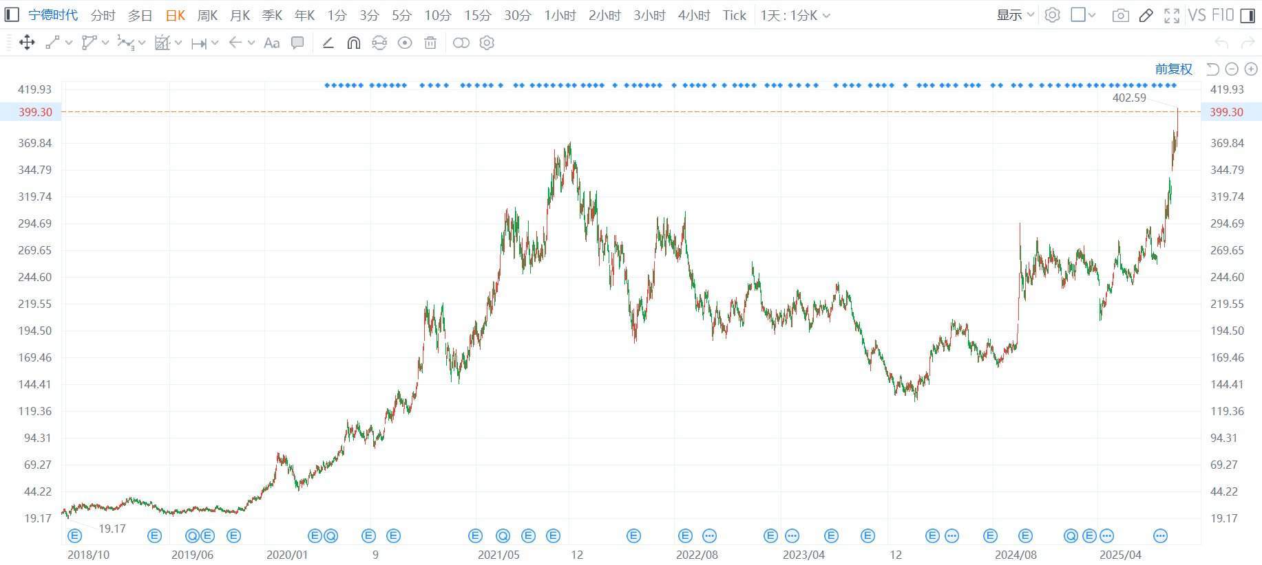 格隆汇9月25日丨A股宁德时代(300750)股价突破400元关口,续刷历史新高。