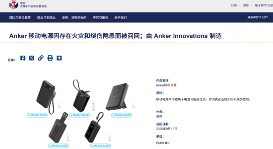 文 丨 《BUG》栏目 周文猛 “充电宝之王”安克创新,再现大规模充电宝召回事件。 近日,美国消费者产品安全委员会(简称:美国CPSC)发布公告称,Anker移动电源因存在火灾和烧伤隐患召回约48.1万个充电宝。据悉,目前安克创新已收到33起火灾和爆炸事故报告,其中4人轻度烧伤,1人严重财产损失。 对此,安克创新在回应《BUG》栏目时表示:“此次召回跟6月在国内的召回是同一批次,只是流程原因,美国CPSC现在才发布。” 据《BUG》栏目不完全统计,今年6月以来,安克创新国内外已经累计公告召回235.2万个充电宝。若全部按照全额退款处理,或导致最低4.32亿元,最高5.57亿元的经济损失。值得注意的是,近期安克创新创始人阳萌进行了一场长达3小时的访谈,却未提及备受关注的充电宝召回一事。网友质疑“一点不提是吧”,该条评论获得高赞。 此外,在亚马逊海外电商平台上,目前被召回的相关型号充电宝已无法搜索查询。