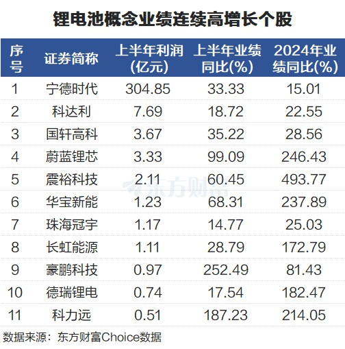 继此前寒武纪股价超过贵州茅台成为市场讨论的焦点外,9月25日盘中宁德时代市值超过贵州茅台,再次成为市场焦点。 按9月25日盘中最高价计算,宁德时代市值最高达1.84万亿元,而贵州茅台盘中最高为1.81万亿元。午后,宁德时代股价有所回调,收盘时市值为1.79万亿元,排在A股第6位,仅次于贵州茅台收盘市值1.8万亿元。 ![]() 宁德时代创历史新高 9月25日,宁德时代低开高走,盘中创下402.59元历史最高价,也是上市以来股价首次超过400元关口。 今年以来,宁德时代累涨51.91%,市值增加6207亿元。而从市值增加角度来看,宁德时代高居A股第二位,仅次于工业富联。工业富联年内大涨224.66%,市值增加9323亿元,最新为1.36万亿元,排在A股第9位。 ![]() 消息面上,近期宁德时代利好消息不断。一方面,宁德时代先后与中国华能、理想汽车、西藏林芝市米林市签署战略合作协议;另一方面,摩根大通日前上调了宁德时代的评级,并将宁德时代2025年至2026年的盈利预测上调约10%;甚至直言“宁德时代是同行中最便宜的股票”。 锂电产业链相对强势 在宁德时代带动下,A股锂电池产业链集体异动,锂矿、固态电池等方向领涨。个股方面,除宁德时代外,西典新能、中电鑫龙双双涨停;捷邦科技、壹连科技大涨超10%;中国宝安、亿纬锂能、当升科技、天齐锂业、格林美等行业龙头股也纷纷强势上涨。 ![]() 一方面,我国动力电池销量继续高景气。中国汽车动力电池产业创新联盟披露的数据显示,8月份我国动力电池单月销量为98.9GWh,创下有数据以来的单月新高。今年前8个月累计销量为675.5GWh,同比增长50.58% ![]() 另一方面,固态电池的产业化进程加速,也在推动锂电池板块走强。比如国轩高科、当升科技、中伟股份均在近期就固态电池进展进行过表态。比如国轩高科,近期在投资者电话交流会上表示,公司首条全固态中试线已正式贯通,“金石”全固态电池目前处于中试量产阶段,良品率已达90%;同时,已正式启动第一代全固态电池2GWh量产线的设计工作。全固态电池技术实现突破,产品不断迭代升级。 中信证券指出,2025年以来,SolidPower、国轩高科等电池企业的全固态电池逐步开启上车路试,2025年—2026年将迎来密集的全固态电池上车路试。国泰海通也表示,2025年以来,固态电池产业化进展持续加速。综合多家车企、电池厂发布的固态电池量产计划,预计2027年全固态电池或迎来产业化元年,固态电池产业化进程加速。 根据EVTank的预测数据,2030年全球半固态电池设备市场规模有望达到624.4亿元,2024~2030年CAGR为59%;2030年全固态电池设备市场规模有望达到455.0亿元,2024~2030年CAGR为159%。 广发期货分析师林嘉旎认为,随着固态电池的逐步量产,碳酸锂需求将出现结构分化,高纯度锂产品需求可能增长,而整体锂市场将随着固态电池产能的释放而逐步调整。长期看,固态电池技术若实现大规模商业化,将推动锂整体需求上升。同时,电池回收技术的进步将促进锂资源的循环利用,形成对原生锂的补充。 上半年盈利352亿元 除了前述这些产业消息外,板块业绩的好转,对于锂电产业链的推动或许更加直接。东方财富Choice数据显示,今年上半年锂电池板块合计归母净利润为352.19亿元,较2024年同期的270.5亿元,同比增长30.2%。 从下图锂电池板块的单季度业绩增速来看,在2023年第三季度和第四季度同比负增长后,锂电池板块的业绩便整体震荡抬升,今年第一季度和第二季度的增速分别是33.78%和27.29%。 ![]() 个股而言,申万锂电池板块中,在剔除今年上半年亏损个股后,有11股在2024年业绩录得两位数增长后,今年上半年继续录得两位数增长。比如宁德时代,2024年业绩增长15.01%,今年上半年业绩增长33.33%。再比如国轩高科,2024年业绩增长28.56%,今年上半年业绩增长35.22%。科达利、蔚蓝锂芯、震裕科技等个股均在2024年业绩高增长后,今年上半年继续明显增长。 ![]() 综合市场观点来看,锂电板块当前正经历周期底部向上,市场对其未来表现持乐观态度,尤其看好明年需求的不断增长,特别是国内储能市场的积极变化。此外,相关企业近期密集披露的固态电池进展,也在点燃市场热情。