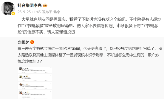 李亮呼吁不要信谣传谣,市场很多所谓“字节概念股”的信息不实,请大家谨慎投资。