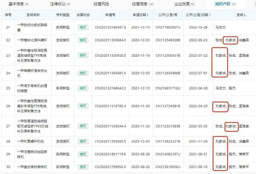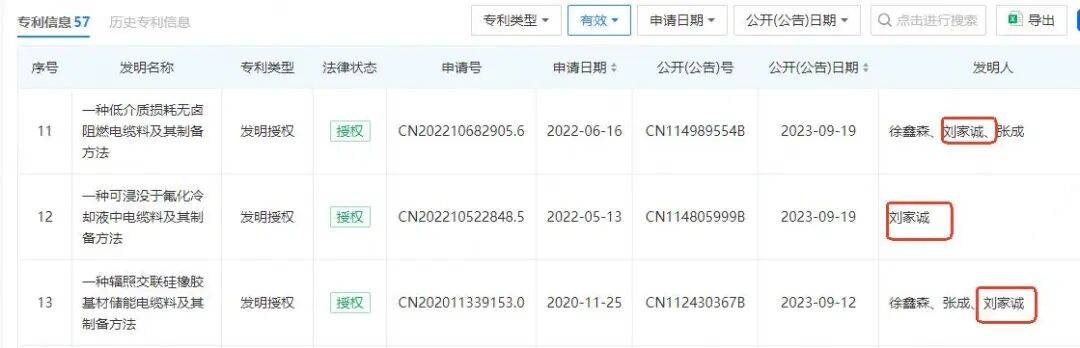 (截图来自欧宝聚合物官网) 据欧宝聚合物官网信息,欧宝化工于1999年6月11日正式成立,股东分别为芬兰OPTATECH公司和扬中市有机化工厂(下称:扬中化工)。2013年欧宝聚合物由三星科技和芬兰OPTATECH公司共同投资成立。 据长江能科2016年披露的新三板公开转让说明书,扬中化工系三星科技改制前的前身。2000年1月1日,扬中化工正式改制成为江苏三星化工有限公司,2009年6月24日更名为三星科技。 另长江能科实控人之一的刘家诚还多次出现在关联方的发明专利人名单中。 据招股书,刘家诚目前担任欧宝聚合物和三星科技董事长,担任长江能科董事、总经理,担任长江能科总经理已有5年多。