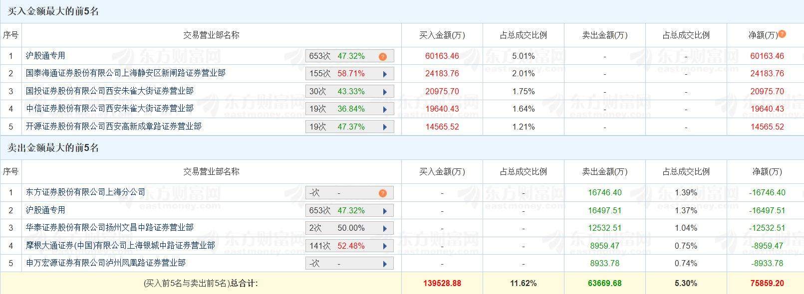 格隆汇9月25日|上海电气(601727)(601727.SH)今日涨停,换手率10.01%,成交额120.08亿元。龙虎榜数据显示,沪股通买入6.02亿元,卖出1.65亿元,净买入4.37亿元;游资“方新侠”为买四席位,买入1.96亿元;“量化基金”位列卖四席位,卖出8959万元。上榜席位全天买入13.95亿元,卖出6.37亿元,合计净买入7.59亿元。(格隆汇)