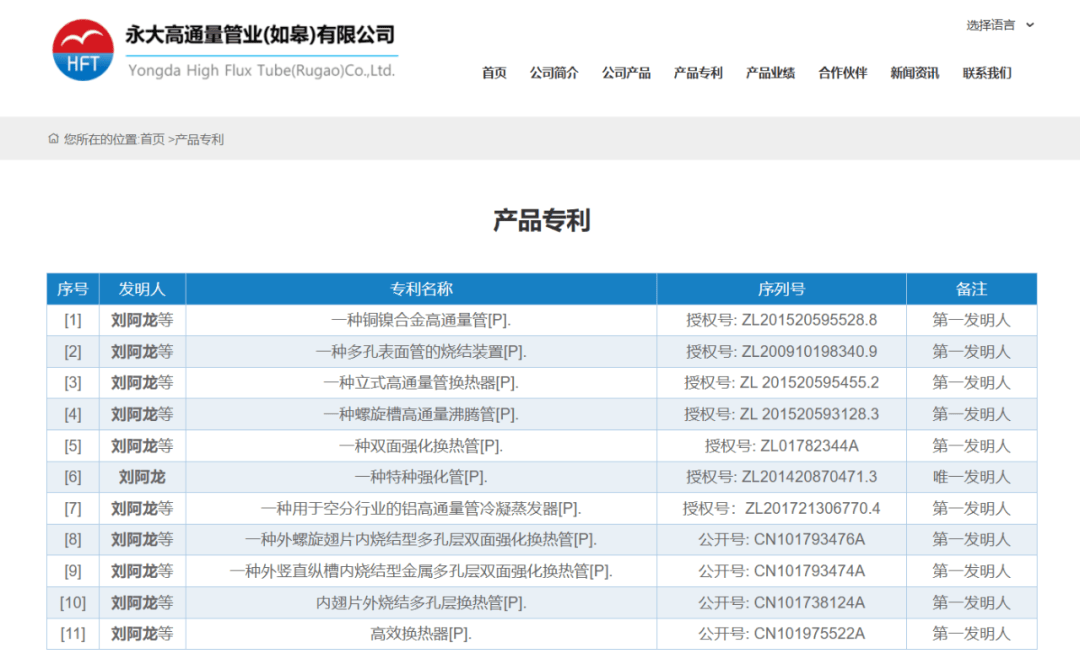 值得关注的是,永大高通量前述专利申请人均非永大高通量。 据国家知识产权局数据,一项专利号为2015205931283的实用新型专利“一种螺旋槽高通量沸腾管”、一项专利号为2015205955288的实用新型专利“一种铜镍合金高通量管”、一项专利号为2015205954552的实用新型专利“一种立式高通量管换热器”、一项专利号为2014208704713的实用新型专利“一种特种强化管”申请人均系江苏信一换热器科技有限公司(以下简称“信一科技”),截至查询日2025年9月28日,前述专利的案件状态均为未缴年费终止失效,且前述4项专利均未发生权属变更。 另外,一项专利号为2010105372178、申请公布号为CN101975522A的发明专利“高效换热器”及一项专利号为2010101051943、申请公布号为CN101793476A的发明专利“一种外螺旋翅片内烧结型多孔层双面强化换热管”的案件状态均为逾期视撤失效。一项申请号为2010101051905、申请公布号为CN101793474A的发明专利“一种外竖直纵槽内烧结型金属多孔层双面强化换热管”,一项申请号为2009101999623、申请公布号为CN101738124A的发明专利“一内翅片外烧结多孔层换热管”的案件状态均为驳回失效。 一项专利号为2010101051977的发明专利“一种双面强化换热管”案件状态为专利权维持,一项申请号为2009101983409的发明专利“一种多孔表面管的烧结装置”的案件状态系未缴年费终止失效,截至查询日2025年9月28日,前述六项专利的申请人均系上海化工研究院,且6项专利均未发生权属变更。 此外,一项申请号为2017213067704的发明专利“一种用于空分行业的铝高通量管冷凝蒸发器”的案件状态系未缴年费终止失效,截至查询日2025年9月28日,该专利的申请人系浙江环宸超通量管科技有限公司(以下简称“环宸科技”),且该专利未发生权属变更。 换言之,永大高通量官网披露的11项产品专利的申请人均并非系永大高通量,其中一项专利申请的申请人系环宸科技。此外,其中的10项产品专利已失效。 值得关注的是,环宸科技官网简介与永大高通量相似。 2.3 环宸科技创始股东兼总经理系刘阿龙,其官网部分简介及图片与永大高通量官网部分内容相似 据永大高通量官网,截至查询日2025年9月28日,刘阿龙系其总经理,其联系电话为“18*******30”。另外,永大高通量企业简介称其为“股份制企业,注册资金1,000万元。位于风景优美、人杰地灵的江苏省,南通市,如皋市,九华镇,经济发达,交通便利。拥有强大的研发团队和装备精良的实验室,拥有专有技术和知识产权,为国内相关行业的骨干企业。 且永大高通量经营产品为各种高效换热管和相关技术咨询服务。主打产品为高通量管、螺旋扁管高冷凝管。致力于传热传质过程,高效换热、余热回收、物料分离等项目。
