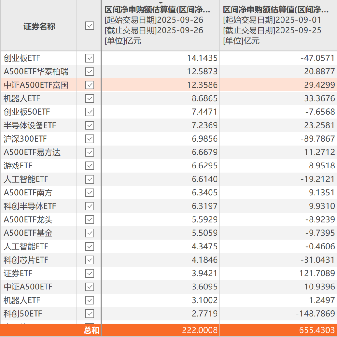 罕见大资金抄底!单日222亿元涌入ETF 炒股第一步,先开个股票账户 国庆中秋长假即将来临,“持币还是持股”备受市场关注。从最近ETF申赎情况来看,资金似乎给出了答案。 在9月26日的震荡行情中,220多亿元资金借道权益类ETF入市,创下过去五个多月来的单日净申购额新高。从资金流向看,半导体、港股、创业板、人工智能等方向强势吸金。 单日222亿元涌入ETF 9月26日,市场遭遇调整。据Choice测算,当日权益类ETF净申购额合计达到222亿元。从日净申购额看,仅次于今年4月16日的292亿元,创下过去五个多月来的新高。 ![]() 从资金流向看,多只宽基ETF获资金涌入。具体来看,中证A500相关ETF净申购额合计超过55亿元。其中,华泰柏瑞中证A500ETF、富国中证A500ETF净申购额均超过12亿元。易方达中证A500ETF、南方中证A500ETF、广发中证A500ETF、华夏中证A500ETF等净申购额均在5亿元以上。 除了中证A500ETF以外,易方达创业板ETF净申购额为14.14亿元,华安创业板50ETF净申购额为7.45亿元,华泰柏瑞沪深300ETF净申购额为7亿元。 除了上述宽基ETF以外,行业主题ETF也强势吸金。其中,华夏机器人ETF净申购额为8.69亿元,国泰半导体设备ETF、华夏游戏ETF、易方达人工智能主题ETF、华夏科创半导体ETF等净申购额均在6亿元以上。 从部分ETF净申购情况看,在9月26日的调整行情中,不少资金积极进场抄底,扭转了前期净流出态势。 以易方达创业板ETF为例,9月1日-9月25日,区间净赎回额为47亿元,9月26日净申购额为14.14亿元。9月1日-25日,华泰柏瑞沪深300ETF净赎回额近90亿元,9月26日净申购额为7亿元。 公募新发基金火爆 从当前新基金发行市场来看,持续回暖,频现爆款基金。 Choice数据显示,截至9月28日,9月新基金发行规模达1548.81亿元,较8月新基金发行规模大幅增长500多亿元,9月也创下年内新基金发行规模月度新高。 值得一提的是,主动权益类基金频现比例配售。其中,招商均衡优选混合基金设置了50亿元的募集规模上限,最终认购申请确认比例仅为56.67%。华商港股通价值回报混合基金同样一日售罄,募集规模上限为10亿元,认购申请确认比例为32.95%。类似的还有博道惠泓价值成长混合基金,一日结束募集,认购申请确认比例为70.78%。 站在当前时点,公募基金保持高仓位运作迎接四季度。 据信达证券测算,截至9月26日,普通股票型基金的平均仓位约为92.51%,偏股混合型基金的平均仓位约为91.14%。 展望四季度投资机会,汇丰晋信基金发表观点称,伴随中秋国庆双节临近叠加“双十一”、“双十二”等促销活动,旅游、餐饮、文娱等服务消费预计保持活跃。以旧换新政策持续推进叠加个人消费贷款贴息政策正式落地,有望推动社会消费品零售总额保持良好增长态势。从权益资产来看,A股与港股盈利已呈现企稳复苏态势,且估值水平处于合理区间,未来有望吸引更多全球长线资金配置。重点关注受益于经济复苏的顺周期、中游制造板块,以及产业趋势推动的AI科技板块的投资机会。 “今年以来,权益资产开始成为居民存款的承接方,一方面是固收类资产随着利率中枢下移吸引力下降,另一方面,权益市场自身的风险收益比明显抬升。活跃资金加仓、机构由债入股是近期市场的主要增量。”鹏华基金发表观点称,2025年上市公司中报出现了一些积极变化,库存、产能周期都运行至绝对底部、企业现金流边际改善、自由现金流/营收比更是创下新高。当前,需要关注科技板块内部局部拥挤度过高的问题,从平衡组合收益与波动的角度,在交易层面可以关注涨幅相对滞后且基本面有积极变化的方向。 想炒股,先开户!选丁冬财经证券,行情交易一个APP搞定>> (文章来源:上海证券报) |