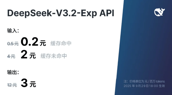 丁冬科技讯 9月29日晚间消息,DeepSeek发布DeepSeek-V3.2-Exp模型。据悉,这是一个实验性(Experimental)的版本,作为迈向新一代架构的中间步骤,V3.2-Exp在V3.1-Terminus的基础上引入了DeepSeek Sparse Attention(一种稀疏注意力机制),针对长文本的训练和推理效率进行了探索性的优化和验证。 目前,官方App、网页端、小程序均已同步更新为DeepSeek-V3.2-Exp,同时API大幅度降价。在新的价格政策下,开发者调用DeepSeek API的成本将降低50%以上。DeepSeek-V3.2-Exp 模型现已在 Huggingface 与魔搭开源。 在各领域的公开评测集上,DeepSeek-V3.2-Exp 的表现与 V3.1-Terminus 基本持平。(文猛)