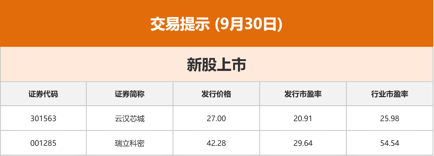环球市场![]() 加沙和平计划:当地时间9月29日,美国总统特朗普与以色列总理内塔尼亚胡举行双边会晤后,双方举行记者发布会,但没有接受记者提问。特朗普表示,内塔尼亚胡谈及了伊朗问题、贸易、《亚伯拉罕协议》以及结束加沙冲突。特朗普称,内塔尼亚胡接受了他提出的加沙和平计划,已非常接近达成协议结束加沙地带冲突。特朗普表示,如果哈马斯接受加沙和平计划,将要求释放所有人质。 OpenAI深耕电商版图:ChatGPT秒变购物+支付一体机。当地时间周一(9月29日),OpenAI在官网宣布推出“即时结账”(Instant Checkout)功能,并允许用户直接在聊天机器人ChatGPT直接购买商品。新闻稿称,其最新的“即时结账”由Stripe开发的智能代理“Agentic Commerce Protocol”提供支持,美国的ChatGPT用户最初可以直接在聊天中从Etsy卖家处购买商品。 美国政府停摆风险:美国国会正滑向一场可能导致联邦政府停摆的僵局,而这将使政策制定者、企业高管和投资者失去评估美国经济状况所必需的关键数据。若国会在周二结束前无法达成预算协议,许多联邦部门的运作将暂停,非核心岗位雇员将被迫休假或解雇,这意味着一系列“黄金标准”的政府经济数据可能延迟发布。 交易提示![]() 点击立即参与申购>> 债市纵览Shibor:9月29日,隔夜shibor报1.3150%,上涨0.10个基点;7天shibor报1.5230%,上涨2.60个基点;14天shibor报1.5270%,下跌1.00个基点;1月shibor报1.5710%,上涨0.10个基点;3月shibor报1.5800%,与前一交易日持平。 欧债:欧市尾盘,英国10年期国债收益率跌4.6个基点,报4.700%。德国10年期国债收益率下跌3.8个基点,报2.070%。法国10年期国债收益率跌3.6个基点,报3.533%。意大利10年期国债收益率跌4.8个基点,报3.533%。西班牙10年期国债收益率跌4.9个基点,报3.264%。希腊10年期国债收益率跌4.7个基点,报3.386%。 商品期货国内期货:9月29日,国内商品期货收盘,多数下跌。焦煤、工业硅等跌逾4%,集运欧线、纸浆跌超3%,玻璃、生猪等跌超2%,棉纱、铁矿石等跌超1%,菜籽粕、豆粕等小幅下跌;沪银涨超3%,沪金、苹果涨超1%,NR、花生等小幅上涨。 国际黄金:COMEX黄金期货当月连续合约上涨46.20美元,涨幅1.21%,报3855.2美元/盎司。 国际原油:国际油价29日下跌。截至当天收盘,纽约商品交易所11月交货的轻质原油期货价格下跌2.27美元,收于每桶63.45美元,跌幅为3.45%;11月交货的伦敦布伦特原油期货价格下跌2.16美元,收于每桶67.97美元,跌幅为3.08%。 国际金属:LME期铜收涨232美元,报10414美元/吨。LME期铝收涨24美元,报2679美元/吨。LME期锌收涨52美元,报2940美元/吨。LME期铅收跌8美元,报1995美元/吨。LME期镍收涨143美元,报15318美元/吨。LME期锡收涨987美元,报35490美元/吨。LME期钴收平,报35000美元/吨。 国际农产品:纽约尾盘,彭博谷物分类指数跌0.11%,报28.9468点。CBOT玉米期货跌0.12%,CBOT小麦期货跌0.19%。CBOT大豆期货跌0.47%,报10.0925美元/蒲式耳,豆粕期货涨0.15%,豆油期货跌1.16%。ICE阿拉比卡咖啡期货跌1.72%,咖啡“C”期货跌1.97%。罗布斯塔咖啡期货跌0.60%。纽约可可期货涨0.62%,伦敦可可期货涨0.33%。ICE棉花期货跌1.51%。 外汇市场人民币:9月29日,在岸人民币北京时间16:30收报7.12020,较上一交易日上涨143点。离岸人民币北京时间18:00报7.12440,较上一交易日上涨190.7点。在岸/离岸人民币北京时间18:00价差为-47。 人民币外汇掉期:9月29日,截至北京时间16:30,美元兑人民币6个月掉期报-714点,美元兑人民币1年掉期报-1335点。 美元:美元指数29日下跌。衡量美元对六种主要货币的美元指数当天下跌0.25%,在汇市尾市收于97.905。截至纽约汇市尾市,1欧元兑换1.1731美元,高于前一交易日的1.1704美元;1英镑兑换1.3438美元,高于前一交易日的1.3410美元。1美元兑换148.64日元,低于前一交易日的149.44日元;1美元兑换0.7972瑞士法郎,低于前一交易日的0.7975瑞士法郎;1美元兑换1.3914加元,低于前一交易日的1.3937加元;1美元兑换9.4146瑞典克朗,高于前一交易日的9.4041瑞典克朗。 财经日历![]() |