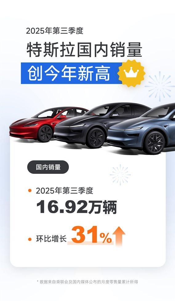 2025年第三季度,特斯拉在全球多个核心市场延续统治力。据乘联会等机构数据统计,9月份,特斯拉中国国内销量7.1万辆,环比增长25%;3季度,特斯拉中国国内销量近17万辆,环比增长31%。