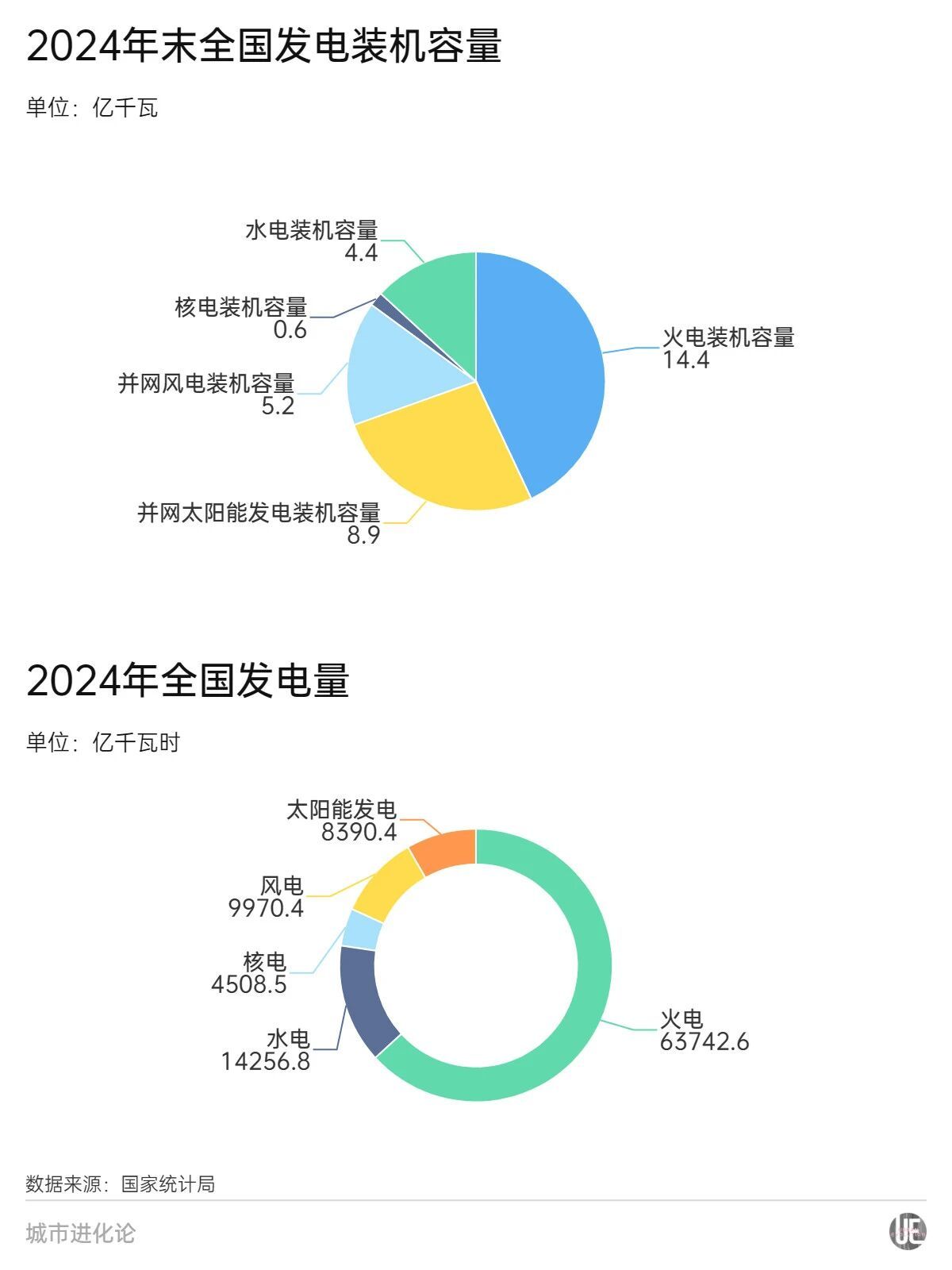近日,中国风电产业再次引发外界关注。 经过数十年发展,中国风电规模日益增长。2000年,中国风电装机容量还仅34万千瓦,到2024年,这一数字已增至5.2亿千瓦,增长超过1500倍。 不只是风电。早在2023年,中国非化石能源装机占比就达到53.9%,历史性超过火电,中国电力低碳转型走到关键节点。 ![]() 如今,中国每10度发电中就有4度来自清洁能源。如果从区域视角来看,中国的电力版图又呈现出怎样的格局? 首先不得不提的是内蒙古。2024年,内蒙古全年发电量达到8179.7亿千瓦时,全国占比8.6%,居全国第一。 单项表现上,它不仅火电、风电均领跑全国,在太阳能发电领域也仅次于新疆,居全国第二。 从传统能源到新能源,内蒙古在多个电力赛道都站上了第一梯队。 ![]() 作为经济大省,广东、江苏、山东不仅是用电大户,也是电力供应的主力军,2024 年稳稳占据全国发电大省的二、三、四位。 目前广东、江苏、山东三省发电结构仍以火电为主,2024年火电占比分别达到70%、80%、83%。 三省也在积极布局新能源。其中,广东凭借得天独厚的条件,成为全国核电第一大省,2024年核能发电量累计达到1254.5亿千瓦时,占全国核电总量的28%。 江苏和山东则把重点放在风电领域。2024年,两省风力发电量分别达到541.2 亿千瓦时、541.1亿千瓦时,并列全国第四和第五,居内蒙古、新疆及河北之后。 ![]() 如果说内蒙古是“全能冠军”,那四川就是水电领域的“最强王者”。作为全国公认的“水电第一省”,四川2024年水电发电量累计达3814亿千瓦时,将“水流”稳稳转化为“电流”,不仅满足省内需求,还通过“西电东送”为东部地区输送清洁能源。 ![]() 在中国能源版图中,新疆堪称“六边形战士”,没有明显短板,且有一项“王牌技能”—— 凭借丰富的光照资源,新疆成为全国太阳能发电第一大省份。此外,新疆水电、风电发电量也双双跻身全国前列,凭借多元化的能源布局,成功站稳全国第五发电大省的位置。 从辽阔草场到西北戈壁,从青藏高原到东海之滨,中国的电力版图,仍在不断突破。