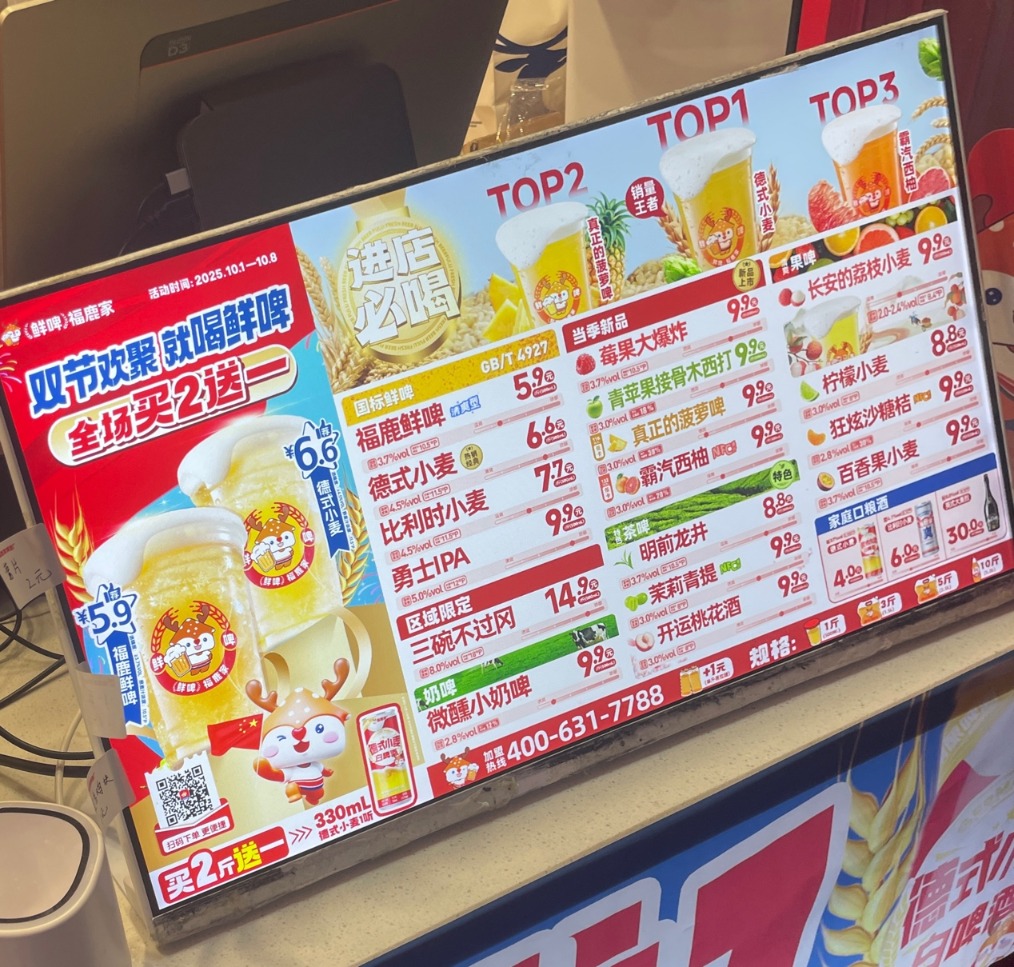 “完全蜜雪的模式,走量” 福鹿家的核心打法延续了蜜雪系 “高质平价” 的基因。其主营精酿鲜啤,产品线覆盖鲜啤、果啤、茶啤、奶啤多个品类,定价除了最贵的一款区域限定“三碗不过岗”售卖每杯(一斤,约500ml)14.9元以外,其余标价均处于每杯5.9元至9.9元区间,显著低于行业一般价格水平。 ![]() 图:福鹿家一门店菜单。记者秦李欣/摄 一名长期从事精酿行业的人士对界面新闻表示,福鹿家的商业模式是“完全蜜雪的模式,走量”。 如何“走量”?本质是将精准选址、严控成本与低价策略紧密结合,支撑其薄利多销的商业模式,打开精酿市场。 界面新闻记者了解到,福鹿家招商部建议加盟商的选址要点是门口人流量大、周边有成熟大型社区,且餐饮占比50%以上。 界面新闻记者实地走访多家福鹿家门店也发现,福鹿家选址一般不会在核心商圈,而是围绕社区型餐饮区域设点,周边多有烧烤、火锅等搭配酒饮的店铺。在控制租金的同时,也保证了客流。 与传统酒馆重社交空间、光线偏暗的风格不同,福鹿家主要做外带,店内明亮,红底白字的招牌也十分醒目。 福鹿家加盟门店面积要求在15平米以上,前为酒墙与收银台,后设冷库,空间利用紧凑。店内几乎不设堂食区,但会有外摆摊位或吧台。店员说:“晴天会在店外外摆几张小桌,客人会带着外卖来吃。” 店员表示,客流主要来自周边用餐的中年男性和年轻群体。界面记者在店期间,有附近烧烤店顾客一次性来福鹿家购买6斤鲜啤;也有结伴聚会的年轻人来探店,女生更喜欢尝试果啤等甜味精酿,男性则较多选择福鹿鲜啤、德式小麦等传统口味。 除了到店生意,线上渠道也同样是“走量”的关键。由于单价较低,外卖平台的起送价一般设为35元(即至少约3斤)。店员对界面记者透露,外卖客单价平均在三四十元左右。 近年竞逐精酿赛道的品牌数量增长较多,市场竞争加剧。《中国精酿啤酒行业现状深度研究与未来投资预测报告(2025-2032年)》指出,当前中国啤酒产量出现下滑,但精酿赛道却逆势向上。 报告预计,供给方面,老牌酒厂、行业巨头、渠道玩家、原生品牌等入局后,精酿啤酒市场规模将从2020年的100亿元提升至2025年的1000亿元以上;消费方面,2025年中国精酿啤酒渗透率将提升至6.3%,消费量将从2022年的14.3万千升激增至23万千升,复合增长率17%。 一名曾在其他鲜啤连锁品牌工作过的福鹿家店员认为,福鹿家的一大优势是口味多元。他对界面新闻表示,前东家“一年只更新了一个口味”。而福鹿家给加盟商的招商资料中承诺“年年有新品,季季有爆品”。 招商人员也表示,每季都会有新品,一般会更新3-5款。门店日常在售产品超15款,较为创新的果啤口味就占10款,并主动提供免费试喝服务。店员介绍,卖的较好的茉莉青提果啤就是本期新品,菜单上还标注了“NFC果汁”字样,符合目前消费者对食材原料的关注趋势。 联储证券指出,啤酒产品升级需强化“小众风味”差异化与“饮料化”趋势,福鹿家的产品策略正契合这一方向。 “农村包围城市”,14个月门店从100到1000 当外界对精酿的印象还停留在“小酒馆模式难扩张、单杯定价 20 元起步”,福鹿家已经用“5.9元起”的平价策略,在全国28个省、自治区和直辖市开出约1200家门店。 ![]() 图:福鹿家一门店。记者秦李欣/摄 福鹿家的千店规模并非一蹴而就。综合东北证券研报、鲜啤福鹿家招商手册,福鹿家初期以“芙鹿家”便利店形态运营,首店开在蜜雪冰城另一创始人张红超母校河南财经政法大学,于2022年2月改为“福鹿家”,并直至2025年1月20日更名为“鲜啤福鹿家”。 福鹿家啤酒厂第一家门店于2021年7月开在河南郑州正弘城,2023年开放全国加盟。界面新闻记者梳理福鹿家微信公众号后发现,福鹿家于2024年4月突破100家门店,并在2025年实现快速扩张,于同年6月突破1000家。 在2024年10月,福鹿家门店数量仅是“全国门店为250+”,2025年1月的品牌更名文章中,提及门店数量为312家,覆盖全国95城。随后4月至6月单月新签约门店数为120余家、248家、338家,分别在全国突破600家、800家、1000家门店,并表示“自7月1日起调整加盟政策,主动放缓门店开设速度”。 具体到城市,福鹿家的开店打法也采用蜜雪式的“农村包围城市”。起初,在开放全国加盟的2023年,11月福鹿家的78家门店多数集中在大本营——河南,少数分布在吉林松原、河北沧州、安徽宿州、陕西汉中、浙江桐庐、宁夏、辽宁沈阳、山东菏泽等省市。 在加速扩张的2024年、2025年,除了进一步在下沉县市铺店,福鹿家也在大城市密集开店。如2024年在成都、广州开了首店;2025年在武汉开出3家直营店,并在北京、深圳、杭州、厦门、西安等城市尝试扩店。 将精酿转向大众快消品并非福鹿家独创。联储证券指出,目前精酿啤酒已形成本土新锐品牌、国际品牌、啤酒龙头衍生品牌三足鼎立的竞争格局。 例如,乐惠国际旗下的“鲜啤30公里”同样设有紧凑型打酒站。品牌主打“新鲜”,侧重“本地酒厂+30公里硬指标”的供应链布局。官网介绍有6款精酿在售,德式小麦售价最低,为22元/500ml。 实现全国超2000门店布局的优布劳精酿酒馆,源自德国百年啤酒厂,在邯郸工厂采用德国克朗斯设备酿酒。品牌更强调专业的德式工艺与高端设备,明星产品船长60海里IPA为58元/500ml。 中国首批本土精酿品牌之一,京A精酿,门店集中在北京CBD等核心商圈,提供正
