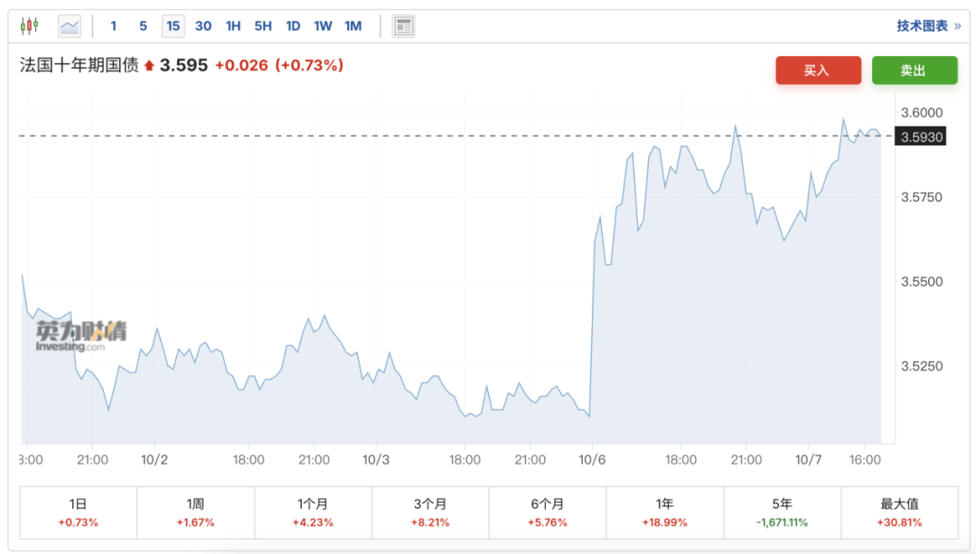 法国政坛“黑天鹅”持续扰动市场。 法国政局动荡加剧,据最新消息,法国新任国防部长布鲁诺·勒梅尔宣布,在总理勒科尔尼辞职后,他已主动退出政府。值得一提的是,勒梅尔在10月5日晚间刚被任命为国防部长。 受此影响,投资者对法国财政稳定性的担忧急剧升温。法国国债市场遭遇猛烈抛售,10月7日,法国十年期国债收益率一度升破3.6%,逼近2011年欧债危机期间的高位。另外,欧元兑美元汇率持续下挫,现已跌破1.170整数关口。 猛烈抛售 当地时间10月6日,刚被任命为法国新任国防部长的勒梅尔宣布退出政府。 勒梅尔在社交媒体上发文解释其退出决定:“我注意到,我的决定引发了一些人难以理解且有失偏颇的反应。我希望这一决定能让围绕组建法国所需要的新政府的讨论得以重启。” 勒梅尔此前曾担任了七年法国财政部长,是法国总统马克龙亲密盟友,他在10月5日晚间刚被任命为国防部长,但仅一天后就宣布退出。 他的退出决定是在法国总理勒科尔尼辞职后作出的。 据央视新闻,勒科尔尼向马克龙递交辞呈,马克龙已接受辞呈。勒科尔尼上任不足30天,他在辞职讲话中坦言,由于不同政治派别的顽固立场,“执政的条件尚不具备”。 值得注意的是,法国新一轮政治动荡正在搅动欧洲金融市场,投资者对该国财政稳定性的担忧急剧升温。10月6日,法国10年期国债收益率与德国国债的利差扩大至年内最高水平,超过89个基点。 10月7日,法国国债市场再度遭遇猛烈抛售,法国十年期国债收益率一度升破3.6%,逼近2011年欧债危机期间的高位。 ![]() 欧元兑美元汇率持续下挫,跌破1.170整数关口。 ![]() 已辞职的总理勒科尔尼在离任讲话中警告称:“在当前的政治环境下,治理法国是一项艰难的任务。” 他表示,过去近一个月中多次尝试与国民议会内不同政治派别展开建设性对话,但“政治分歧和党派利益最终阻碍了合作的实现”。 据央视新闻,马克龙与已辞职总理勒科尔尼再次举行会谈,要求后者在48小时内与各党派进行最终谈判。 勒科尔尼在社交媒体表示,将“与各方政治力量进行最终谈判,以维护国家稳定”,并于10月8日晚向总统汇报谈判结果。 据悉,马克龙已就此表态,如果勒科尔尼在48小时内谈判失败,马克龙本人将“承担责任”。 未来48小时的谈判结果,将直接决定法国政局的走向以及市场的短期风险。 影响多大? 有分析指出,法国政坛未来不确定性的增加,可能会使息差进一步扩大。目前,马克龙面临三个选择:任命一位新总理、提前举行议会选举,或是自己辞职。 荷兰国际集团Chris Turner在最新发布的报告中表示,受法国政治动荡再起,叠加美国政府“停摆”持续且无新动态的影响,欧元汇率恐面临进一步下跌风险。 Chris Turner指出,博彩市场数据显示,本月法国提前举行大选的概率为57%,但目前尚不清楚提前大选能否解决当前的问题。外汇交易员或将密切关注法国与德国政府债券的收益率利差。 Chris Turner称,若10年期法德国债利差扩大至90个基点,将敲响警钟,并进一步加剧欧元的贬值压力。 分析认为,马克龙去年的提前选举导致产生了一个分裂议会,其他大多数党派都不欢迎削减开支的预算案。 先前有数据显示,2024年法国公共赤字占GDP的5.8%(欧元区最高),债务总额则占到GDP的113%——这两个数字都远高于欧盟的规定。 上月底,勒科尔尼表示,法国政府将加强对社会支出和地方政府开支的管控,计划在2026年把财政赤字率控制在4.7%,并在2029年进一步降低至约3%。 IG的Beauchamp指出,“真正令人担忧的是,总理辞职可能最终会迫使马克龙辞职,这将导致危机大幅加剧。” Mischler Financial Group董事总经理Tom di Galoma指出:“市场愈发担心美国政府关门可能持续到10月15日。法国总理在任不到一个月就辞职,这一事件叠加了美债市场的抛压,推高了收益率。” 咨询公司LB Macro的创始人Luigi Buttiglione表示,勒科尔尼的辞职“将法国推向未知” ,法国经济将受到商界信心明显丧失的影响,从而影响整个欧盟的经济活动。 (文章来源:券商中国) |