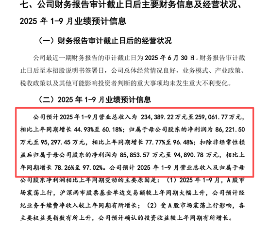 作为4家IPO排队券商之一,东莞证券率先更新招股书。 近日,深交所网站显示,东莞证券第七次更新招股书,披露最新财务数据等资料。东莞证券预计今年1月至9月营业总收入为23.44亿元至25.91亿元,同比增长44.93%至60.18%;净利润8.62亿元至9.53亿元,同比增长77.77%至96.48%。 值得一提的是,东莞证券在今年6月,获证监会核准变更主要股东并完成交割,交割完成后,东莞国资持有东莞证券合计持股比例从55.4%上升至75.4%,成为绝对的第一大股东。 与此同时,东莞证券还在今年2月迎来了空缺已久的总裁,原招商证券资管总经理杨阳担任该公司总裁。 ![]() 最新业绩曝光 东莞证券最新业绩浮出水面。 近年来,东莞证券经营业绩总体比较稳定。据招股书,2022年至2024年,该公司营业收入分别为22.99亿元、21.55亿元和27.53亿元,净利润分别为7.91亿元、6.35亿元和9.23亿元。2025年上半年该公司营业收入14.47亿元,净利润4.88亿元,同比上升。 招股书披露,手续费及佣金净收入是东莞证券营业收入的重要来源,主要包括证券经纪业务净收入、期货经纪业务净收入、投资银行业务净收入和资产管理业务净收入等,该公司手续费及佣金净收入,分别占2022年至2025年上半年当期营业收入的比例分别为62.63%、57.41%、56.69%及59.71%。 与此同时,东莞证券还披露了今年1月至9月未经审计初步测算的数据。 东莞证券预计,今年1-9月营业总收入为23.44亿元至25.91亿元,同比增长44.93%至60.18%;净利润为8.62亿元至9.53亿元,同比增长77.77%至96.48%。 ![]() 东莞证券解释,预计今年1至9月营收和净利润增长主要原因包括:一是2025年1-9月,A股市场震荡上行,沪深两市股票基金单边交易额较上年同期大幅上升,预计经纪业务手续费净收入较上年同期有所增长;二是受A股市场震荡上行影响,各主要权益类指数有所上升,预计确认的投资收益较上年同期有所增长。