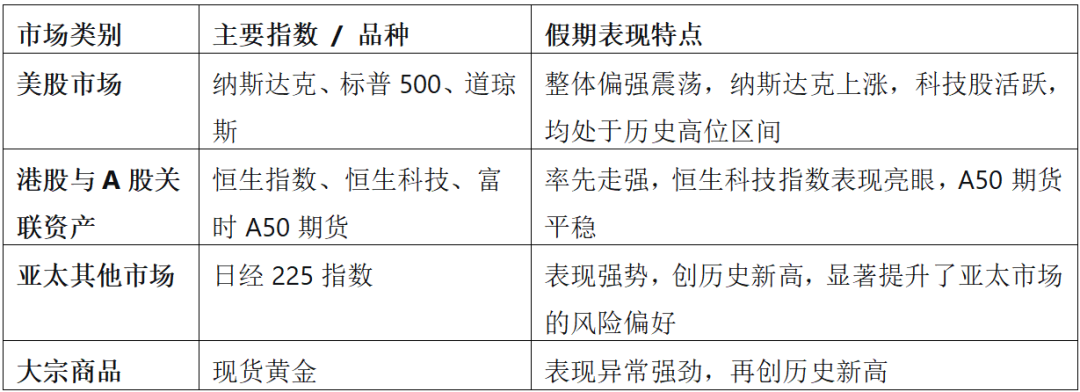 节后国内商品市场怎么走 国庆中秋长假期间,国内市场虽按下“暂停键”,但海外市场交易热度不减,整体表现强劲。这份“假期成绩单”不仅为节后 A 股开盘铺垫了积极氛围,更透露出全球市场的多重信号。 “不同于以往假期的波动,此次海外市场呈现出‘结构亮眼、情绪向好’的特征,三大看点尤为突出。” 国贸期货宏观首席分析师郑建鑫告诉期货日报记者,一是科技与半导体板块领涨,以港股为例,半导体板块成为上涨先锋,受高盛上调中芯国际、华虹半导体目标价等利好刺激,相关公司股价大幅上涨,反映出市场对AI驱动下半导体需求的乐观预期;二是黄金避险属性突出,现货黄金价格在假期期间强势突破历史关口,这背后既有地缘政治紧张带来的避险需求,也反映了市场对全球宏观经济的复杂情绪;三是市场情绪传导积极,与A股关联度极高的港股市场及富时A50期指表现坚挺,为A股节后开盘积累了积极的情绪动能。 在郑建鑫看来,长假期间外围市场的强劲表现并非突发行情,而是多重因素共振的结果,且多数已在市场预期之内。“美国国会两党对立持续激化,政府短期结束‘停摆’的概率下降,进一步刺激市场避险情绪。”郑建鑫表示。 近日,美国劳工统计局表示,政府“停摆”期间不发布或收集任何经济数据。在缺少官方就业报告的情况下,就业数据处理公司ADP发布的私营部门就业数据格外引人关注。数据显示,美国9月ADP就业人数减少3.2万人,远低于预期的增加5.1万人,前值为增加5.4万人。数据公布后,交易员显著提高了对年内美联储进一步降息2次的押注。在避险需求推动下,黄金价格创历史新高,比特币同步上涨,美国国债与美元则保持相对稳定。 此外,核心赛道利好集中兑现。“节前市场关注的半导体、黄金、AI芯片三大赛道,既是A股的高景气主线,也是假期利好的直接受益板块,直接推动相关板块上涨,完全符合市场节前的布局逻辑。”郑建鑫如是说。 尽管整体氛围向好,但海外市场并非“普涨”,而是呈现出明显的结构分化:股市方面,美股科技板块表现亮眼,欧洲三大股指(英国富时100、法国CAC40、德国DAX)10月6日却全线收跌,表现相对疲软。商品方面,贵金属是绝对的“主角”;农产品市场缺乏亮点,仅玉米期价微涨,小麦、大豆期价小幅下跌;能化板块承压,布伦特原油、WTI原油期价显著下跌,价格波动较为剧烈。 郑建鑫表示,贵金属价格强劲上涨是多种因素共同推动的结果。一方面,美国经济数据疲软强化美联储降息预期,叠加美国高额债务与政府“停摆”风险,进一步动摇美元信用,推动资金转向黄金;另一方面,地缘政治紧张局势及全球经济不确定性加剧,显著提振黄金作为传统避险资产的需求。此外,多国央行(特别是中国央行)持续增持黄金。调查显示,多数央行预计美元储备占比将下降,同时海外黄金ETF与期货资金持续流入,共同打开了金价新的上行空间。 对于金价的后续走势,目前市场观点整体偏乐观,多家主流金融机构给出积极预测。 不过,乐观之余也需保持警惕。郑建鑫认为,若市场对经济的风险偏好回升,或主要央行释放超预期的“鹰派”信号,短期内可能对金价造成扰动;但从中长期看,推动金价上涨的核心逻辑——如全球央行购金趋势、对美元体系的担忧等并未改变,预计黄金涨势仍将延续。 “对短线交易者而言,当前市场流动性充裕、波动性增强,虽提供了良好的交易机会,但需密切关注美国关键经济数据发布,及时把握市场情绪转折点。对长期配置型投资者而言,可以将黄金视为资产组合中的战略性配置部分。”郑建鑫认为,黄金投资周期通常较长,短期可能面临显著波动,需有足够的持仓耐心。 在国投期货分析师黄恬看来,受外盘行情影响,节后国内相关板块,尤其是贵金属和有色金属的价格波动将较为强烈,沪金、沪银、沪铜等品种节后开盘可能会出现高开,投资者需密切关注相关价格波动;长假期间农产品价格小幅上行,后期可关注贸易政策变动,以及四季度可能出现的拉尼娜天气带来的交易性机会。 海通期货研究所总经理助理顾佳男则认为,外盘市场风险偏好持续走高,主要受美联储降息预期强化及科技板块领涨驱动,对全球风险资产形成正向情绪传导,这将有效提升国内投资者的风险偏好,推动A股市场情绪改善。 “国内商品走势的核心逻辑在于外盘价格与国内需求的协同作用。若外盘维持强势且节后消费数据验证内需复苏,国内商品价格有望同步走高;若外盘波动加剧或国内需求修复不及预期,价格上行空间可能受限。”顾佳男说。 国庆中秋长假期间外盘市场表现 ![]() 节后国内商品市场走势预测 ![]() (文章来源:期货日报) |
