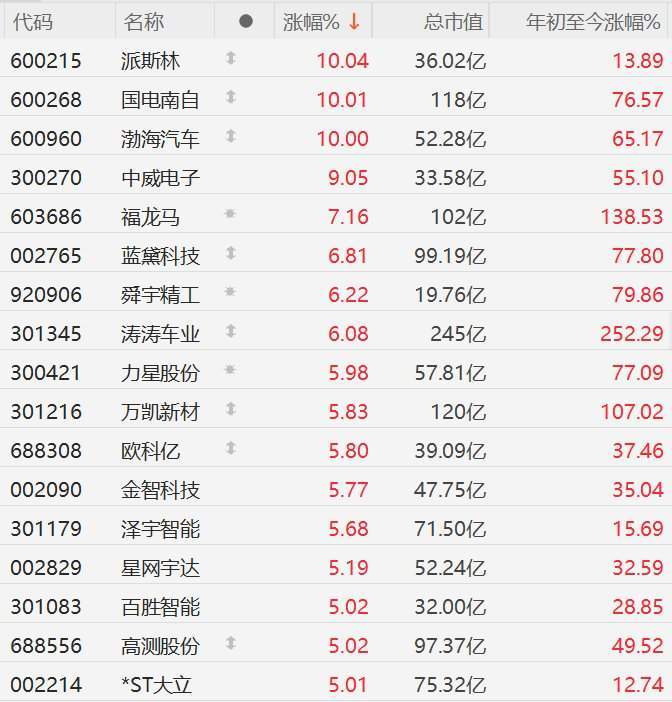 格隆汇10月10日|A股市场机器人概念股逆势走强,其中,派斯林、国电南自、渤海汽车10CM涨停,中威电子涨9%,福龙马涨超7%,蓝黛科技、舜宇精工、涛涛车业涨超6%,力星股份、万凯新材、欧科亿、金智科技、泽宇智能、星网宇达、百胜智能、高测股份涨超5%。