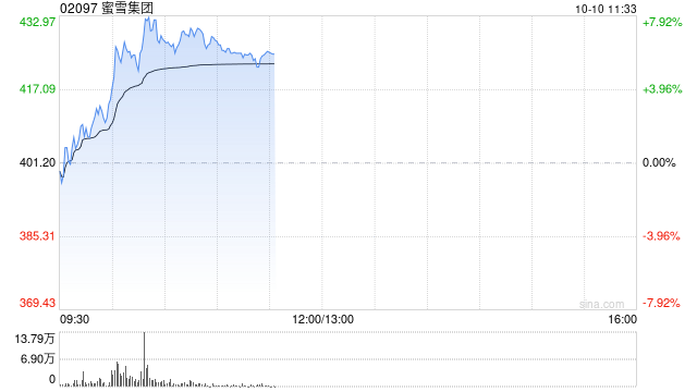 蜜雪集团(02097)早盘股价上涨6.18%,现报426港元,成交额6.29亿港元。 蜜雪集团近期发布公告称,已斥资2.97亿元获得鲜啤福鹿家53%股权。从持股比例看,股权转让完成后,蜜雪集团将成为福鹿家第一大股东。这一举措标志着蜜雪集团正式进军现打鲜啤市场,为消费者提供单价约人民币6至10元的现打鲜啤产品。 (责任编辑:宋政 HN002)