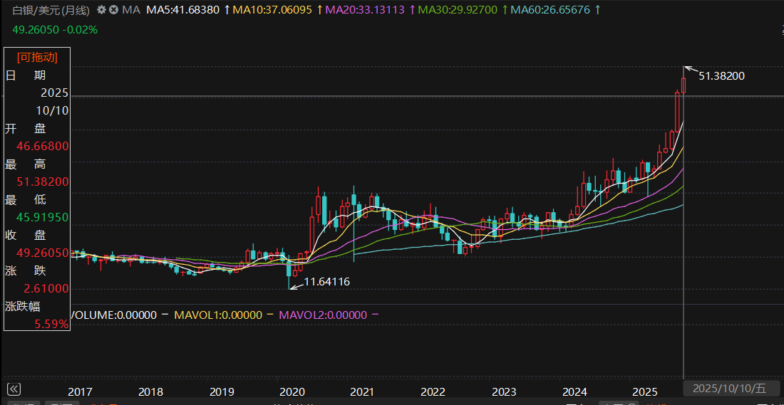 本报记者许林艳肖伟 近段时间以来,贵金属的持续涨势引发市场广泛关注。黄金价格不断攀升之外,白银价格也屡创新高,且年内涨幅比黄金更为强劲。 10月9日,现货白银价格突破50美元/盎司,为历史首次。10月10日,据丁冬财经Choice数据,白银开盘价报46.67美元/盎司,最高达51.38美元/盎司,年内涨幅超70%。 ![]() 浙商证券研报表示,当前白银的核心矛盾点在于趋势性减少的库存与贵金属牛市下日益提升的白银投资机会。 “当前,矿端供给已进入刚性区间,全球白银矿产供给目前面临增长瓶颈。2019年至2024年间,全球矿产银产量不仅没有增长,反而略有下降。”湖南白银股份有限公司董秘袁志勇在接受《证券日报》记者采访时说道。据了解,这背后有两个核心原因,一是矿石品位持续下滑,这意味着要获得同样多的白银,需要开采和加工更多的矿石,直接推高了单位生产成本。二是全球矿端扰动频发,主要产区的大型银矿常受到环保政策收紧、社区谈判等突发因素影响。“这些扰动都让稳定的产能释放变得困难。”袁志勇说道。 “白银的供应很大程度上不取决于自身的市场需求,因为超70%的白银是作为铜、铅、锌、金等主金属的伴生品产出的。这个特性带来了一个结构性难题。白银的产量很大程度上取决于铜、锌等主金属的行情和开采计划。”株洲冶炼集团股份有限公司董秘陈湘军在接受《证券日报》记者采访时表示。 据了解,当这些基本金属市场波动或价格低迷时,矿山开发意愿下降,会直接拖累白银的伴生供应。“即便银价上涨,矿企也很难在短期内为白银单独扩大产能。白银的提炼还需要看冶炼企业的技术能力强弱和综合成本的高低。”陈湘军说道。 福建华策品牌定位咨询创始人詹军豪接受《证券日报》记者采访时表示,近期通胀预期升温、工业需求(如光伏电池和新能源领域)激增,叠加投资资金涌入商品市场避险,推动银价创历史新高。此外,美元走弱及低利率环境也增强了其吸引力。 詹军豪认为,白银难以完全取代黄金作为投资标的。虽然白银近期涨幅较大,但它价格波动大、流通性较差,工业属性强导致受工业需求变动影响大。白银产出供应不稳定,全球白银矿端供给受矿石品位下跌、矿端扰动频发等因素制约,增长乏力。 (文章来源:证券日报) |