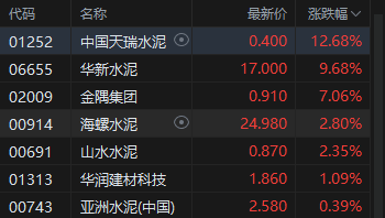 建材水泥股活跃,中国天瑞水泥涨超12%。天风证券(601162)指出,当前玻璃品种处于过去三年50%分位数以下,水泥高于玻璃,其中中国建材、海螺水泥(600585)、金隅集团(601992)处于过去三年80%分位数左右水平,华润建材科技相对较低,而西部水泥、华新水泥(600801)相对较高,此次上涨主要是低估值玻璃品种弹性相对更大。节前工业和信息化部等六部门联合发布《建材行业稳增长工作方案(2025―2026年)》,该方案针对建材行业市场需求不振、结构性问题突出,明确25-26年行业主要目标和工作举措。在当前建材反内卷的助力下,去产能有望加速推进,推动行业竞争格局改善,叠加资金面环境进一步改善,继续看好建材低估值品种。