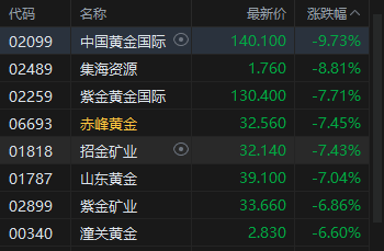 黄金股普跌,中国黄金国际跌超9%。消息面上,今天凌晨,现货黄金失守3960美元/盎司关口,较高位回落近100美元/盎司,COMEX黄金期货收跌1.95%。据报道,当地时间10月9日晚,哈马斯高级官员、首席谈判代表哈利勒・哈亚发表声明宣布达成停火协议。以色列政府10日凌晨批准加沙停火协议。宝城期货指出,短期以色列与哈马斯达成停火协议,导致地缘政治紧张情绪迅速降温,叠加前期已录得较大涨幅,短期多头了结意愿较强。华泰期货表示,金价创出历史新高之后获利了结情绪或短期压制金价,但现阶段避险溢价与美联储宽松主线逻辑均未发生明显变化,未来价格有望进一步上行。