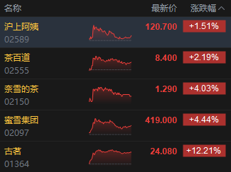 茶饮股普涨,古茗涨超12%。消息面上,据市场多家媒体报道,2025年中秋与国庆“双节叠加”,在“假日经济”“出游热潮”等因素带动下,新茶饮品牌门店迎来客流量高峰。