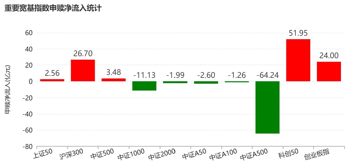 调整就是机会!节后机构大动作调仓 行业主题ETF被爆买 这三只更是疯狂吸金超20亿元 在丁冬财经看资讯行情,选丁冬财经证券一站式开户交易>> 节后股指冲高回落,沪深两市股票型ETF和跨境型ETF合计净流入约431亿元。 行业主题上看,科创芯片、电池、有色金属等ETF被资金看好,而通信、医药相关ETF被资金抛售。 超400亿资金借道ETF进场 本周沪深两市成交5.17万亿元,其中沪市成交2.35万亿元,深市成交2.82万亿元。截至最新收盘,沪指报收于3897.03点,全周上涨0.37%,深证成指报收于13355.42点,全周下跌1.26%。 数据显示,本周沪深两市股票型ETF和跨境型ETF合计净流入约431亿元,行业主题ETF净流入346亿元。 ![]() 细分来看,主要宽基指数整体资金申赎统计显示,本周科创50净流入51.95亿元,中证A500净流出64.24亿元。 ![]() 具体ETF方面,规模较大的10只宽基指数ETF本周合计净流入88.32亿元,其中沪深300ETF、科创50ETF净流入均超27亿元。 ![]() 本周主要指数相关ETF表现 对于当前市场,有券商表示,展望10月,美联储已启动降息周期,推动全球流动性环境趋于宽松,也拓宽了国内货币政策的操作空间,市场对后续出台宽松措施的预期有所升温,有望进一步提振市场风险偏好。但前期热门板块的拥挤度不断提升,可能加剧市场短期波动风险。