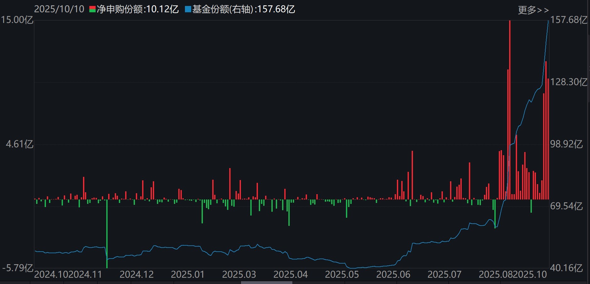 科创芯片、电池、有色金属受资金追捧 在行业主题ETF方面,本周净流入资金超1亿元的基金有76只,其中科创芯片ETF、电池ETF和有色金属ETF分别增加了12.12亿份、21.7亿份和12.38亿份,净流入资金30.61亿元、24亿元和21.73亿元。 ![]() 在资金流出方面,本周有6只行业主题ETF净流出逾1亿元,其中通信ETF、医药ETF和5G通信ETF份额分别减少3.7亿份、5.81亿份和1.1亿份,分别净流出资金10.06亿元、2.59亿元和2.36亿元。 值得注意的是,节后电池板块再度获得资金关注,电池ETF(159755)份额增加了21.7亿份,升至157.68亿份,创上市新高。 ![]() 电池ETF(159755)基金份额变化 有分析认为,近年来,政策支持为电池行业发展注入了强劲动力。国家持续推出新能源汽车鼓励政策,包括以旧换新、充电基础设施建设及新能源下乡等,进一步释放了消费潜力。同时,“反内卷”政策的逐步落地促使行业竞争趋于理性,整体盈利环境有望改善。 此外,有色金属板块节后大涨逾4%,有色金属ETF(512400)份额逼近百亿,创上市新高。 ![]() 有色金属ETF(512400)基金份额变化 黄金等贵金属在长假期间迎来大涨。国际金价大涨的背后,主要是由美国政府停摆引发的短期波动、日本政治更迭带来的短期不确定性、美联储持续降息预期和全球央行持续购金共同推动的。与此同时,供给短缺和算力革命逻辑下,铜价近期也明显走强。展望后市,有券商表示,除美联储处于降息通道带来的货币宽松外,国内正在推行的“反内卷”优化生产要素,提升各环节盈利能力和改善市场预期,有利于金属价格上涨向下游的传导。 11只ETF周成交额超100亿元 本周,股票型ETF和跨境型ETF成交额超100亿元的ETF有11只。 ![]() 其中,香港证券ETF周成交额超500亿元。 此外,科创芯片ETF以及多只中证A500相关ETF本周二级市场价格创上市新高。 10月A股有望迎来关键政策窗口期,市场风险偏好或进一步回暖。同时,市场流动性延续向好趋势,两融余额已处于上行通道,居民存款搬家仍处于初期阶段,美联储降息为全球流动性提供支撑,A股市场预计延续震荡抬升格局。 4只ETF下周上市 基金重仓股向来是投资者关注的热点,但是主动管理型基金的重仓股浮出水面,通常都有一定的滞后性,而ETF布局的标的却是非常明确的,通过跟踪新上市ETF,通常可以发现近期热点个股,新上市ETF带来的增量资金也值得关注。 目前有4只ETF披露下周上市,跟踪标的为科创板200、科创人工智能、金融科技、恒生中国30等。 ![]() 目前有9只ETF披露节后发行,跟踪标的有中证800红利低波动、中证500、金融科技、航空航天、港股通科技等。 ![]() 全新妙想投研助理,立即体验 (文章来源:每日经济新闻) |