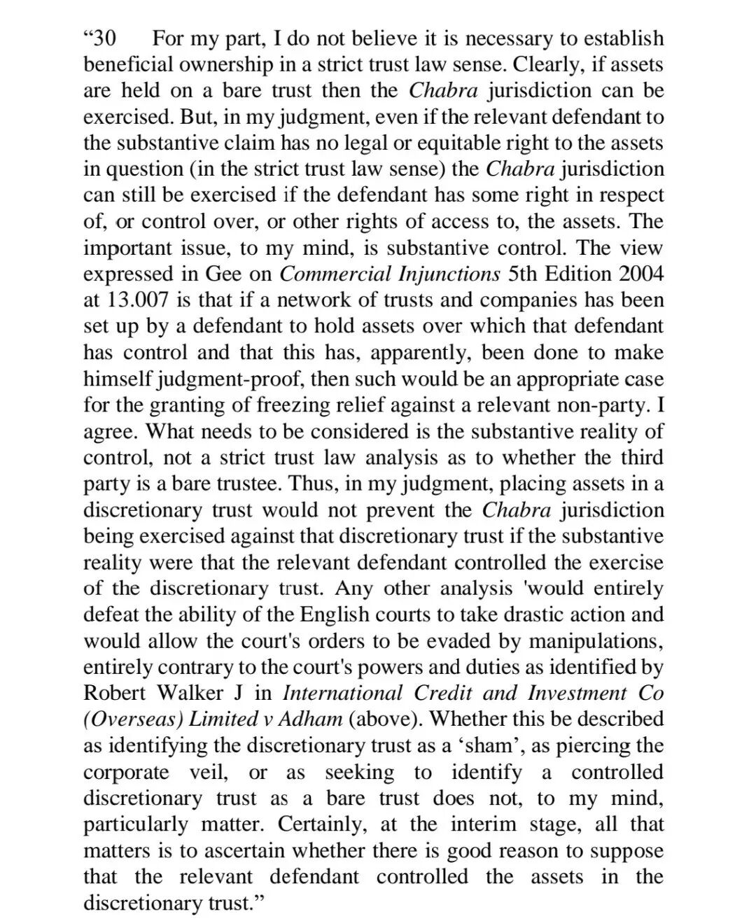 许家印海外家族信托被“击穿”? 在丁冬财经看资讯行情,选丁冬财经证券一站式开户交易>> 近日,恒大创始人许家印家族信托被“击穿”的消息在业内传开。 香港高等法院在判决书中称,许家印及丁玉梅等被告需要以书面文件披露其价值5万港元及以上的资产,并且不得再以任何方式处置或处理其任何资产或降低其价值,同时对于这些资产,接管人有获得、查阅相关文件等权限。 ![]() 备受关注的是,香港法官在裁判文书附件中列明了采取冻结禁令的公司及相关银行账户,包括许家印全资控股的公司及其银行账户,以及部分并非许家印名下的第三方名下的银行账户,后者便包含了许家印拥有实际控制权限的“消极信托”账户。 多位业内人士分析称,此次判决并不意味着许家印的家族信托被“击穿”,但其信托此次难以发挥隔离性,也为投资者敲响了警钟——即信托有效性一定是建立在合法、诚信和财务健康且早作规划的基础上。 许家印境外信托引关注 近日,有消息称,今年9月香港高等法院就恒大创始人许家印家族信托案作出历史性判决。法院不仅授权清盘人接管许家印名下资产,还将其通过离岸家族信托持有的财产一并纳入接管范围,意味着许家印境外家族信托被“击穿”。 对此,记者获取的香港高等法院判决书显示,该案的背景是2024年6月,科尔曼法官对许家印下达马雷瓦禁令(Mareva injunction),禁止其处置包括全球资产在内的总额达77亿美元的财产,同时许家印还被要求向恒大集团通报其个人所有价值5万港元以上的资产信息,并须在7日内通过宣誓书确认。 ![]() 但是,许家印却没有遵守该禁令。因此,香港高等法院法官在判决书中逐项进行批驳,认为在本案中,任命资产接管人和管理人员是公允而合理的。不仅如此,法官在裁判文书附件中列明了采取冻结禁令的公司及相关银行账户,包括许家印全资控股的公司及其账户,以及部分并非许家印名下的第三方名下的银行账户。 根据相关文书,许家印及丁玉梅等被告需要以书面文件披露其价值5万港元及以上的资产,并且不得再以任何方式处置或处理其任何资产或降低其价值,同时对于这些资产,接管人有获得查阅相关文件等权限。 值得注意的是,冻结的第三方银行账户包括了许家印拥有实际控制权限的“消极信托”账户,便有了其家族信托被“击穿”的说法。 不过,清华大学法学博士杨祥发布观点称,判决书中已经明确,接管人的权限仅限于识别、保全和维护许家印的资产。也就是说,当下恒大集团的清算人获得了对许家印、丁玉梅等名下资产,以及二者通过“消极信托”或名义代持等空壳持有资产的“接管人”身份。目前,还远没有到“击穿”信托,以信托资产来偿还许氏债权人的债权的阶段。 另外,杨祥还解释称,消极信托即“裸信托”(bare trust),空有信托之名,并无信托之实。 在判决书中,香港高等法院法官也提到:“若资产仅以消极信托形式持有,则可行使查布拉管辖权(the Chabra jurisdiction,一种资产冻结令 )。但依我之见,即便涉事被告在严格信托法意义上对相关资产不享有法定或衡平法上的权利,只要其对该资产具有某种控制权、支配权或其他接触权,仍可行使查布拉管辖权,关键在于实际控制权的实质存在。” ![]() 境外家族信托被“击穿”已有先例 值得注意的是,此前就曾出现过因拥有控制权而使得家族信托被“击穿”的情况。 早在2023年,美国联邦地区法院公布了La Dolce Vita Fine Dining Company Limited(甜蜜生活美食有限公司)与张兰的民事诉讼裁决书,判决张兰及其公司名下所有的纽约西53街20号,39A公寓出售所得归甜蜜生活美食有限公司所有。而甜蜜生活美食有限公司实际上是欧洲私募股权公司CVC Capital Partners(以下简称“CVC”)为了收购俏江南成立的,判决书还透露张兰在2019年与CVC的诉讼中败诉,共欠对方1.42亿美元(约合人民币9.8亿元)及其利息。 彼时,为了追回欠款,CVC盯上了张兰的家族信托。新加坡高等法院披露的裁判文书显示,新加坡高等法院法官认定张兰是其离岸家族信托所在银行账户资产的实际所有人,因此同意了CVC提出的任命接管人的申请。这也意味着,张兰的债权人CVC可以申请对这笔资金采取相应的执行措施。 而当时张兰家族信托存在的问题在于,张兰既想要利用信托隔离债务,又害怕失去对资产的控制会导致的意外,因此过度保留了控制权。 值得关注的是,根据媒体报道,香港法院查明,许家印家族信托架构的核心缺陷在于“控制权未真正转移”。尽管许家印夫妇名义上将资产注入信托,但实际仍保留着投资决策、更换受益人等关键控制权,信托受托人在实际操作中沦为“傀儡”,未能履行独立管理职责。 合法诚信是信托有效性存在前提 “家族信托的隔离有效性是存在前提的,不管是许家印境外信托的冻结,抑或是张兰家族信托被‘击穿’,都是给投资者敲响的警钟。”一位资深信托研究员接受上证报记者采访时坦言。 他表示,无论任何人,如果以非法所得设立信托,最终该信托都有可能被“击穿”。与此同时,当委托人在信托合同(境内)/信托契约(境外)中或信托架构上保留了对信托财产过多的控制权,且导致信托财产能够被委托人自由支配,信托被“击穿”的可能性也会明显增加。 此外,根据裁决书内容,许家印根本没有遵守披露令。一方面,他没有按照要求说明相关公司与信托架构的关联,另一方