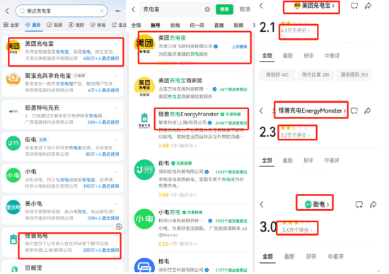 行业变卷,“第一”地位动摇 据艾瑞咨询《2024年中国共享充电宝行业研究报告》,当前,国内共享充电宝行业集中度较高,前五大品牌占比96.6%。截至2023年底,怪兽充电的市占率最高,达到36%。从交易规模角度来看,怪兽充电GMV超过40亿元,位列行业第一梯队。 在与《BUG》栏目沟通中,多位共享充电宝代理商直言。自去年底以来,怪兽充电“行业第一”的地位,已经发生了变化。 “目前为止,充电宝市场排名美团第一,怪兽第二。”一位怪兽充电宝代理商在与《BUG》栏目沟通中直言。虽然,目前尚无专业报告及检测数据证明共享充电宝这一市场情况的变化。不过通过微信及支付宝充电宝查询充电宝小程序使用情况发现,无论支付宝“最近使用量”,还是微信“好友使用量”,美团充电宝均已全面超越怪兽充电。