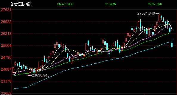 格隆汇10月13日|港股早盘低开,临近午盘跌幅加大,恒生科技指数一度跌至4.8%,午间大幅收跌4.54%,恒生指数、国企指数分别下跌3.49%及3.48%,恒指下挫超900点险守25000点关口,三大指数均创下近一个月新低,且录得连续下跌行情。