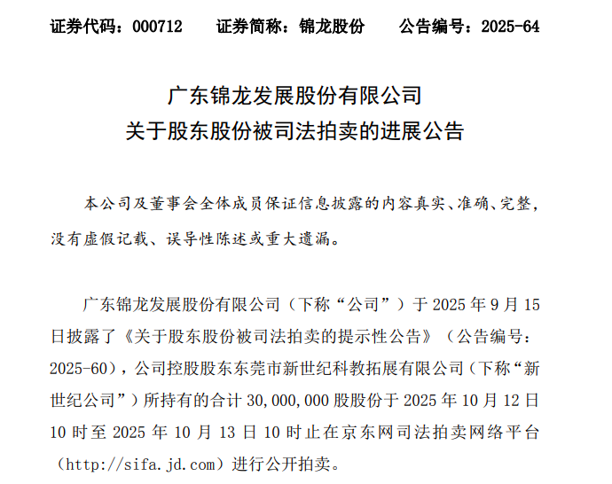 726次出价!锦龙股份3000万股司法拍卖结果出炉 年内第六次拍卖已在路上