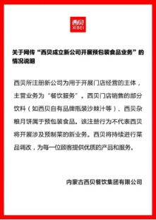 成立新公司卖预包装食品?西贝回应:不代表将开展涉及预制菜的新业务 全新妙想投研助理,立即体验 近日,天眼查App显示,由内蒙古西贝餐饮集团有限公司控股95%的“深圳市玉华美好餐饮管理有限公司”正式成立,注册资本为100万元,经营范围为餐饮管理、食品销售(仅销售预包装食品)、食品互联网销售(仅销售预包装食品)等。 ![]() 上述情况与此前西贝“预制菜风波”的舆论阴影重叠,再度引起消费者的关注与质疑,不少网友认为,西贝成立新公司卖预包装食品。 对于此次成立新公司,西贝紧急发布情况说明称,西贝所注册新公司为用于开展门店经营的主体,主营业务为“餐饮服务”。西贝门店销售的部分饮料(如西贝自有品牌瓶装沙棘汁等)、西贝杂粮月饼属于预包装食品。该注册行为不代表西贝将开展涉及预制菜的新业务。同时,西贝还表示,将持续进行菜品调改,为每一位顾客提供优质的产品和服务。 ![]() 《经济参考报》记者就品控和产品质量等问题询问了淘宝、京东平台官方旗舰店客服,客服对记者称,店铺售卖以面米产品为主,都是按照现有国家相关标准加工的,并经检测符合标准的产品,可放心食用。 此前,9月10日,罗永浩在微博发文称,自己和同事去西贝吃饭,“发现几乎全都是预制菜,还那么贵”,西贝客服回应称店内招牌菜牛大骨现煮、莜面手搓,炒菜用新鲜蔬菜现制。次日,西贝创始人贾国龙召开媒体会强硬回应,坚称门店“100%没有预制菜”,并表示将对罗永浩提起诉讼。 随后,罗永浩悬赏十万元征集西贝使用预制菜的证据,事件持续升级。西贝发布公开信详述相关菜品制作流程,并开放后厨参观,但媒体和顾客探访后厨时,发现大量“超长待机”半成品,包括两年保质期的西兰花等。另有混用工具、使用转基因大豆油等问题。9月14日西贝宣布暂停全国门店后厨参观。 9月15日,西贝发布致歉信称,将尽可能把中央厨房前置加工工艺调整到门店现场加工,并承诺10月1日前,西贝全国门店会陆续完成相关调整。罗永浩也发布长文,称决定放弃追究西贝。网友将西贝此次事件及其一系列回应操作戏谑为“灾难级公关”事件。 9月17日,《经济参考报》记者就西贝发布的致歉信中所提及的整改细节及成果以及公关策略调整措施及信任重建长期规划等问题对西贝餐饮集团发去采访函,截至发稿前,记者未获回复。 记者还注意到,国庆前夕,西贝还调整了部分菜品的价格,大部分下调10%-30%。国庆假期,为了吸引和留住消费者,西贝上新了部分餐饮品类,并发放代金券。据西贝官方信息,2025年10月9日—2025年10月31日,消费实付每满50元送1张50元代金券、消费实付满100元送2张、满150元送3张。 (文章来源:经济参考网) |
