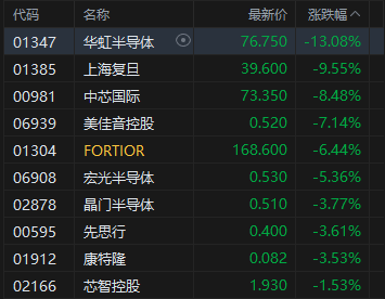 半导体板块跌幅居前,华虹半导体跌超13%。东吴证券(601555)发布研报认为,过去几年我国半导体设备快速发展,刻蚀、薄膜沉积设备等均已有相应国产突破,但先进制程所需的关键设备国产化率仍有较大提升空间,例如光刻机国产化率为0、刻蚀和薄膜沉积设备国产化率也仅为20%左右。我们认为伴随关键设备的国产突破,先进制程扩产有望加速。此外伴随关税升级,看好自主可控赛道,半导体设备为重要一环,看好先进制程的关键设备进展突破。