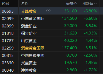 黄金股回调,赤峰黄金跌超6%。COMEX黄金期货价格触及4190.9美元后高位大幅回落,盘中一度跌至4105美元,日内波动超90美元。美银将2026年黄金平均价格预测上调至每盎司4400美元,峰值目标5000美元。该行分析师指出,白宫“非传统政策框架”将持续利好黄金,包括财政赤字扩大、债务上升、削减经常账户逆差的意图,以及在通胀率约3%的环境下推动降息。