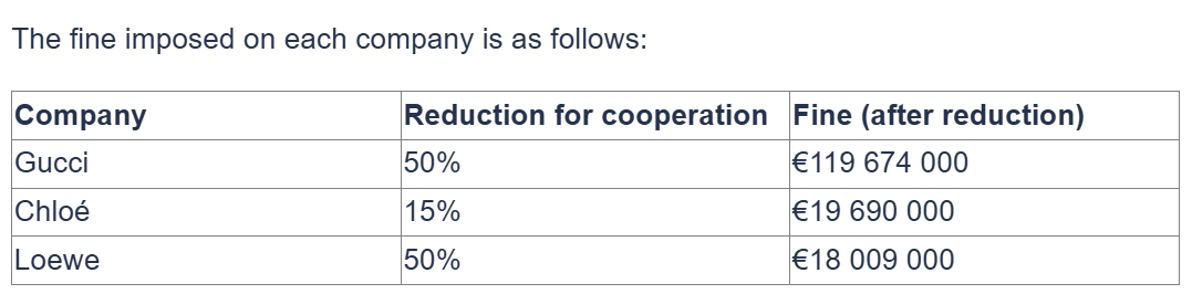 欧盟委员会对古驰、蔻依、罗意威处以罚款 总额超1.57亿欧元 炒股第一步,先开个股票账户 【导读】欧盟委员会对古驰、蔻依、罗意威处以罚款,总额超1.57亿欧元 三家知名奢侈品公司,集体被罚! 10月14日,欧盟委员会官网显示,欧盟委员会因古驰(Gucci)、蔻依(Chloé)和罗意威(Loewe)存在反竞争定价行为,对三家公司处以合计超1.57亿欧元罚款。 ![]() 古驰、蔻依和罗意威总部分别位于意大利、法国和西班牙,三家公司均活跃于高端时尚产品的设计、生产和分销领域,包括服装、皮具和各种配饰。 调查显示,这三家时尚公司从事了一种称为“转售价格维持(RPM)”的做法,限制了其线上和实体零售商(均为独立转售商)设定其自身零售价格的能力。侵权行为覆盖了整个欧洲经济区(EEA)领土。 ![]() 具体而言,这三家时尚公司通过对其零售商施加限制来干预其商业策略,力求让零售商采用与其自身直销渠道相同的价格和销售条件。例如,要求零售商不得偏离建议零售价格、最高折扣率以及特定销售时段;在某些情况下,禁止零售商提供任何折扣。 这三家时尚公司的侵权行为均于2023年4月结束,当时欧盟委员会对其经营场所进行了突击检查。欧盟委员会于2024年7月启动了正式程序。三家公司均明确承认事实及其对欧盟反垄断规则的违反,这使得委员会能够根据反垄断合作程序结案。 罚款金额方面,古驰被处罚1.197亿欧元,蔻依被处罚1969万欧元,罗意威被处罚1800.9万欧元。其中,古驰和罗意威的处罚金额均获得50%的减免。欧盟委员会提到,罚款金额的减免反映了每起个案中合作的时间点和价值。 ![]() 欧盟委员会执行副总裁Teresa Ribera表示:“今天,我们对三家欧洲时装公司处以罚款,理由是他们违反欧盟竞争规则,干扰其独立零售商的价格。在欧洲,所有消费者,无论他们购买什么、在哪里购买,无论是在线上还是线下,都应该享受真正的价格竞争。这一决定向时尚界及其他行业发出了一个强烈的信号,即我们不会容忍欧洲出现这种做法,公平竞争和消费者保护平等地适用于每个人。” (文章来源:中国基金报) |