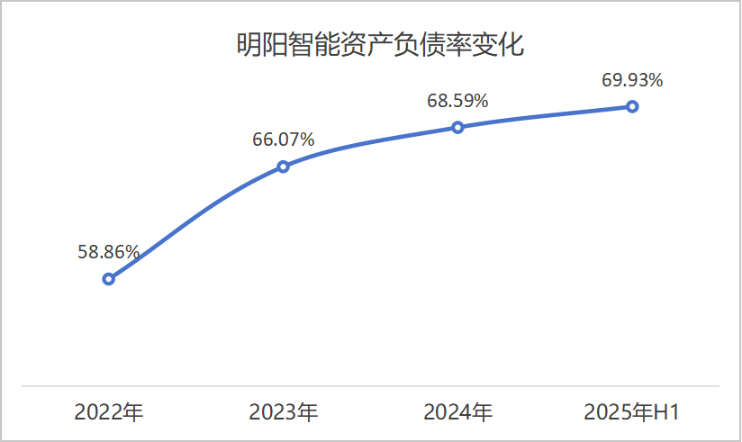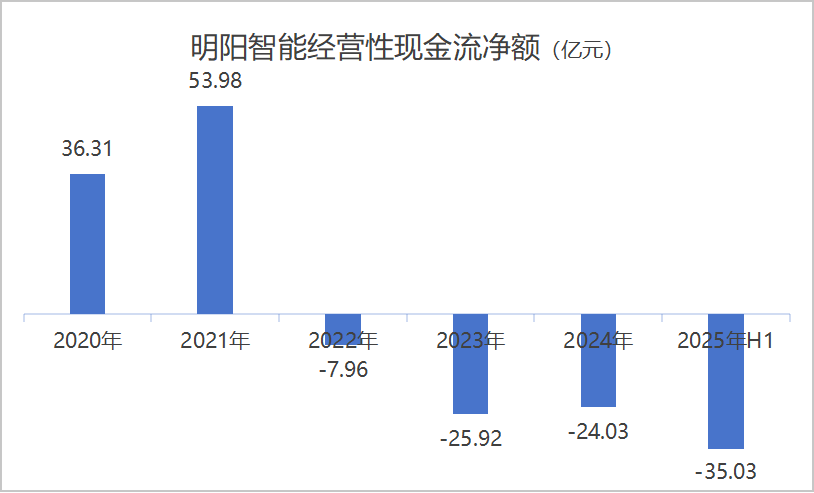 该项目的资金来源于公司自有资金、自筹资金,包括但不限于公司2022年发行全球存托凭证募集的资金及未来银行融资。 截至2025年上半年末,明阳智能账上货币资金方面和交易性金融资产方面,合计137.18亿元,与较2022年末的113.57亿元增长约20%。 明阳智能账上货币资金确实充裕,表现上看足以覆盖项目前期投入。然而,界面新闻细究其财务结构发现,潜在风险不容忽视。 一来,债务攀升,公司长、短借增幅远高于货币资金。 2022年末至2025年上半年,公司短期借款由2.60亿元上升至39.47亿元,增幅超过1400%。长期借款由52.57亿元增加至134.44亿元,增幅达155.74%。 由此带来的是,明阳智能向来不高的资产负债率,近三年还在攀升。2022年末,公司资产负债率还不到60%,到2025年上半年末,其资产负债率达到69.93%。 ![]() 明阳智能资产负债率走势,制图:界面新闻 二来,界面新闻记者注意到,明阳智能现金流并不乐观,连续告负。 2022年至今三年半时间,公司经营活动产生的现金流量持续呈现净流出状态,且缺口日渐增大。 2022年,明阳智能经营活动产生的现金流量净额为-7.96亿元,到2025年上半年,这一指标已扩大至-35.03亿元。 ![]() 明阳智能经营性现金流净额(亿元),制图:界面新闻 三来,应收账款高企。 明阳智能的应收账款及票据已上升至高达163.71亿元,较去年底的高位又增加了约26亿元。 明阳智能高管表示,公司一直重视应收账款的回收,实施催款流程,货款到期前提醒。挂钩业绩考核,将回款指标、逾期率纳入销售团队考核。 同时,明阳智能与全球化工巨头巴斯夫合资的首个中德海上风电场项目明阳巴斯夫湛江海上风电示范项目也在开工建设之中,尚须持续的资金投入。 对于资产负债率高居不下一事,投资者也十分关注。在半年报业绩说明会上,明阳智能高管表示:“公司债务受行业运行及发展趋势、资产构成等因素影响,未来公司将通过优化资产结构、改善应收账款等方式降低债务。” 如今上马开工长期、大规模的新项目,这势必将继续推高明阳智能资产负债率水平。 对此,明阳智能人士对界面新闻称:“我们想要接海外订单的话,这个(资产负债率走高)也不可避免。” 技术突围的机遇与障碍 公告中,明阳智能表示,本次投资将公司先进的海上风电技术引入北海区域,有助于加速漂浮式风电技术的商业化进程。 “这(漂浮式风电技术)主要是针对深远海海域的一个技术。这是海风行业未来的一个发展方向。”明阳智能人士对界面新闻记者解释称。 该人士继续表示:“海风行业需要相关的海域资源,在近海海域开发几近饱和之后,要向深远海海域拓展,那就需要切换到这个技术路线。” 据了解,漂浮式风电是一项能让风电机组在深远海“漂浮”起来发电的技术,它不像传统固定式基础那样依赖海底支撑,而是通过浮式基础、系泊系统和动态电缆等技术,将海上风电的开发边界从近海推向了深远海。 这一技术适用于水深超过50米的深远海。据Principle Power统计,全球超过80%的海上风能资源潜力都蕴藏在水深超过40m的海域。而我国深远海风能可开发量是近海的3-4倍。 界面新闻记者了解到,国内各风电巨头均在加速推进漂浮式风电技术,近期均有新进展。