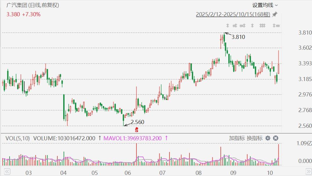 格隆汇10月15日|广汽集团(2238.HK)盘中一度拉升大涨超13%,报3.57港元。截至目前成交额放大至3.5亿港元。
