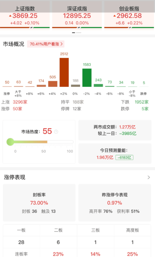格隆汇10月15日|A股三大指数早盘上涨,截至午盘,沪指涨0.1%报3869.25点,深成指持平,创业板指涨0.22%,北证50涨0.97%。沪深京三市半日成交额12805亿元,较上日缩量4010亿元,全市场超3200只个股上涨。