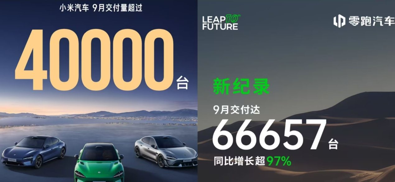 图片来源:小米汽车、零跑汽车公众号 同时,造车新势力第二梯队的竞争尤为激烈。小鹏汽车、小米汽车两家企业同时突破月销4万辆大关,在均创历史新高的同时,也形成了新势力阵营的“4万辆俱乐部”。值得一提的是,截至9月底,这两家企业今年的年销目标达成率都超过了70%。 蔚来在多品牌战略下当月交出约3.47万辆的成绩单,同比增长64%。其中,蔚来主品牌1.37万辆、乐道1.52万辆、萤火虫5775辆,三大品牌均创历史新高。而此前长期占据新势力销量榜第一位的理想汽车9月销量近3.4万辆,环比已显现回暖迹象。 整体来看,造车新势力们9月表现可圈可点,不少品牌都创下了交付新高。根据乘联分会方面的数据,9月新势力零售份额达20.2%,同比增长3.4个百分点。“小鹏汽车、零跑汽车、小米汽车等品牌拉动新势力份额同比增长3.3个百分点。”崔东树透露道。 值得一提的是,在造车新势力9月整体销量中,纯电动车型的占比达到了70.3%,其中10万至15万元级别销量占比大幅增长,整体产品结构出现了变化。“从结构比例上来看,今年9月造车新势力销量中,纯电动与增程的结构占比,从去年的50%∶50%变为70%∶30%。”乘联分会方面的数据显示。 “插混和增程今年表现不如纯电车。在纯电车市场中,小型纯电动车和高端纯电动车表现相对较强,在家用市场尤其是增购市场中,对车市的拉动贡献度较大。”崔东树解释称,今年以来,随着电池成本下降,车企推出多款小型纯电车型,同时一些大型纯电SUV陆续上市,使得市场产生改变。 除此之外,鸿蒙智行等品牌表现也很抢眼,其月销实现5.3万辆。“自主传统车企的独立新能源品牌作为创二代的表现较为抢眼。9月的市场份额达到了12.5%,同比增长1.2个百分点。其中,深蓝汽车、奕派科技、极氪、极狐、岚图等自主大集团的自创新能源品牌表现优秀。”乘联分会方面表示。 每日经济新闻 (责任编辑:刘畅 )
