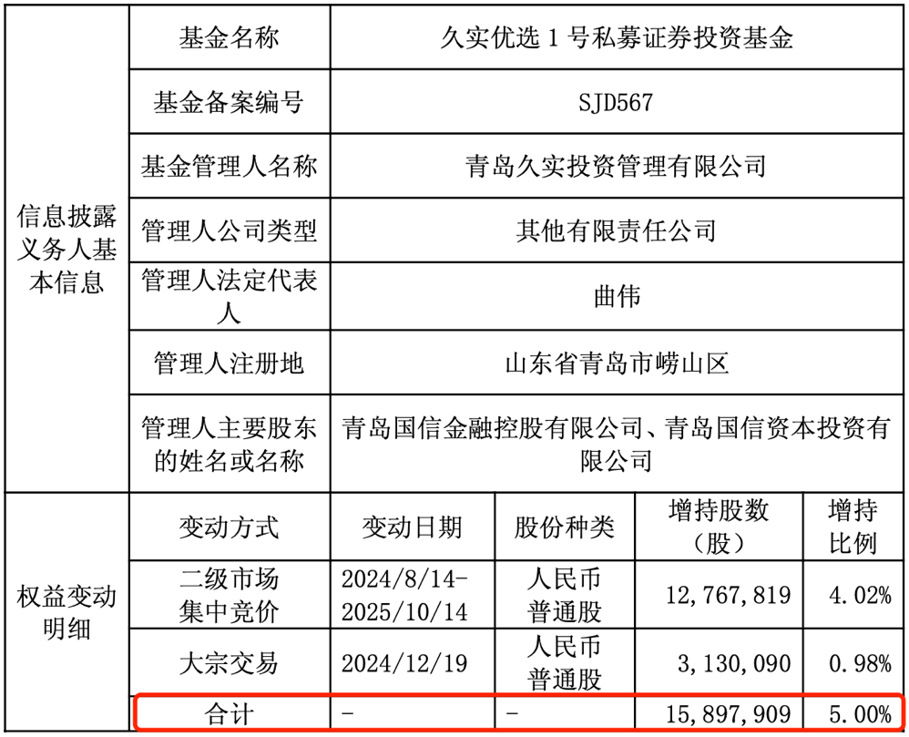 海尔生物突遭私募举牌!久实投资具有国资背景