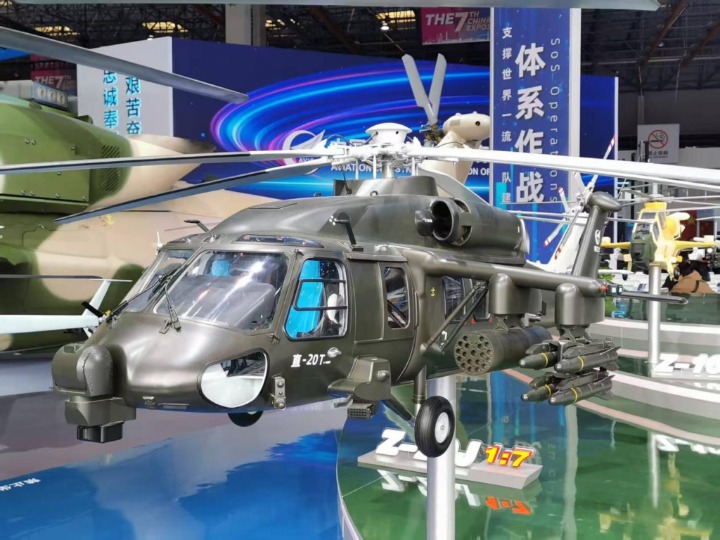 直-20T直升机的火力堪比武装直升机。 第七届中国天津国际直升机博览会10月16日开幕,中国陆军直-20T直升机首次亮相直博会。 直-20T直升机是在直-20直升机的基础上发展而来,兼具火力突击能力和机降运输能力的新型突击运输直升机,直-20T加装了武器、火控、防护等设备,针对航电、飞控等系统进行适应性改进。 ![]() 本文图片均为澎湃新闻记者谢瑞强摄 在室内静态战区,中国航空工业集团展示了直-20T直升机的模型,从模型可以看出,直-20T直升机短翼配备了4个挂点,可挂载空地导弹、火箭发射巢等武器,结合复合挂架其可携带8枚空地导弹和2个容纳了19根发射管的火箭发射巢,外挂武器携带量堪比一同展出的直-10ME或直-19E两款专用的武装直升机,火力凶猛。 据了解,直-20T直升机除了执行一些勤务、运输、机降、搜救等任务外,还具备执行近距离火力支援和压制任务的能力。 ![]() ![]() ![]() ![]()