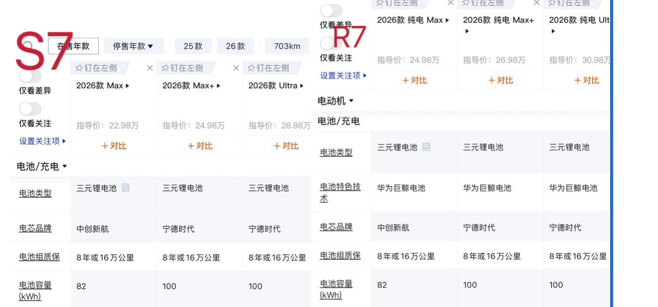 记者接近从鸿蒙智行人士处获悉,因中创新航电芯产能不足,智界部分车型将调配一批宁德时代82度电池(三元锂离子+磷酸铁锰锂混合),此前该车搭载的是中创新航同规格电池。两品牌电池的性能、使用寿命及功能均符合华为“巨鲸”电池平台标准,质保政策保持一致。据知情人士表示,此举旨在加快交车,保障用户享受国家购置税减免政策(今年减3万,明年减1.5万)。该人士还称,宁德时代电芯成本高于中创新航,车辆售价保持不变。(蓝鲸新闻翟智超)