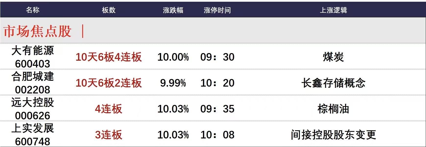 今日午盘全市场共33股涨停,连板股总数8只,11股封板未遂,封板率为75%(不含ST股、退市股)。焦点股方面,大有能源、远大控股晋级4连板,长鑫存储概念股合肥城建走出10天6板,间接控股股东变更的上实发展上实发展。