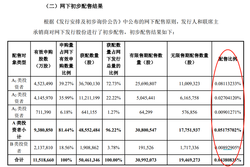 首例出炉!A股打新巨变:获配比例差距扩大至10倍 全新妙想投研助理,立即体验 网下打新已发生巨变。 10月15日,首批科创成长层新股禾元生物发布了打新中签结果。这是A股首例采用约定限售方式申购新股的结果。结果显示,A类投资者的获配比例是B类投资者的约10倍。此前,科创板新股申购中两者比例基本相同。 据悉,约定限售方式是限售期限更长、比例更高的投资者可以获配更多的新股。“锁定期限更长、锁定比例更高,意味着承担的风险更高,理论上报价就会更谨慎,从而可以优先获配。这个政策的目的是希望通过风险匹配机制,去约束机构谨慎报价。”资深投行人士王骥跃向券商中国记者表示。 新股获配比例差距扩大至约10倍 禾元生物网下申购最终结果显示,A1类投资者的获配比例是0.081%,A2类投资者的获配比例是0.027%,A3类投资者的获配比例是0.009%,B类投资者的获配比例是0.0089%。 上述A类投资者的新股获配比例,已经是B类投资者的约10倍。这一现象在此前科创板新股申购中还未出现过。 ![]() 据悉,A类投资者包括公募基金、社保基金、养老金、年金基金、银行理财产品、保险资金、保险资产管理产品、合格境外投资者资金。B类投资者为除A类外的其他投资机构,比如私募机构。 以最近上市的3家科创板企业为例,影石创新A类投资者获配比例是0.044038%,B类获配比例是0.044027%,两者基本接近。屹唐股份A类获配比例0.0427%,B类获配比例0.0424%,两者基本接近。汉邦科技A类获配比例是0.0337%,B类获配比例是0.0336%,两者也基本接近。 打新制度生变 这种变化源于新股申购规则的变化。 禾元生物是首批采用约定限售方式申购的新股。所谓约定限售,是指在网下申购设定不同档位的限售比例或限售期,A类投资者可以自主申购不同限售档位的证券,B类投资者按照最低限售档位自主申购。 发行人和主承销商协商确定本次的限售档位为三档。档位一:投资者报价时对应申报限售期9个月,限售比例70%。档位二:投资者报价时对应申报限售期6个月,限售比例45%。档位三:投资者报价时对应申报限售期6个月,限售比例10%。A类投资者可以自主申购上述三种档位中不同限售档位,B类投资者仅可申购档位三。 根据公告,本次配售需满足限售比例更高、限售期更长的网下投资者配售比例应当不低于其他投资者的要求。A1类投资者(选择档位一的A类投资者)的配售比例不低于A2类投资者(选择档位二的A类投资者)的3倍,同时A2类投资者的配售比例不低于A3类(选择档位三的A类投资者)与B类投资者的3倍。 也就是说,A1类投资者的获配比例,至少要是B类投资者获配比例的9倍。规则有意拉大了新股的获配比例。在此前的科创板新股申购中,A、B类投资者获配比例差距不大。 以科创板股票影石创新为例,在发行公告中,影石创新称,向A类投资者进行配售后,联席主承销商将向B类投资者配售,并确保A类投资者的配售比例不低于B类。只有一个笼统的A类高于B类的规定。但是实际操作中,A类一般是略微高于B类。 深化发行承销制度试点 约定限售方式的推出,有一定的政策背景。 2024年6月19日,证监会发布了“科创板八条”,提出开展深化发行承销制度试点,在科创板试点对未盈利企业公开发行股票锁定比例更高、锁定期限更长的网下投资机构,相应提高其配售比例。 今年3月底,上交所贯彻落实“科创板八条”要求,在中国证监会指导下,修订了《首次公开发行证券发行与承销业务实施细则》(下称《首发承销细则》),优化科创板未盈利企业新股发行配售机制。 本次《首发承销细则》调整未盈利企业发行网下限售安排,提高有长期持股意愿投资者的配售比例。按照不同发行规模进一步细化未盈利企业网下限售比例安排。同时,明确未盈利企业可以采用约定限售方式,对网下发行证券设定不同档位的限售比例或限售期。报价方面,A类投资者可以自主申购不同限售档位的证券,其他投资者按照最低限售档位自主申购。配售方面,明确限售比例更高、限售期更长的网下投资者配售比例应当不低于其他投资者。 想炒股,先开户!选丁冬财经证券,行情交易一个APP搞定>> (文章来源:证券时报网) |
