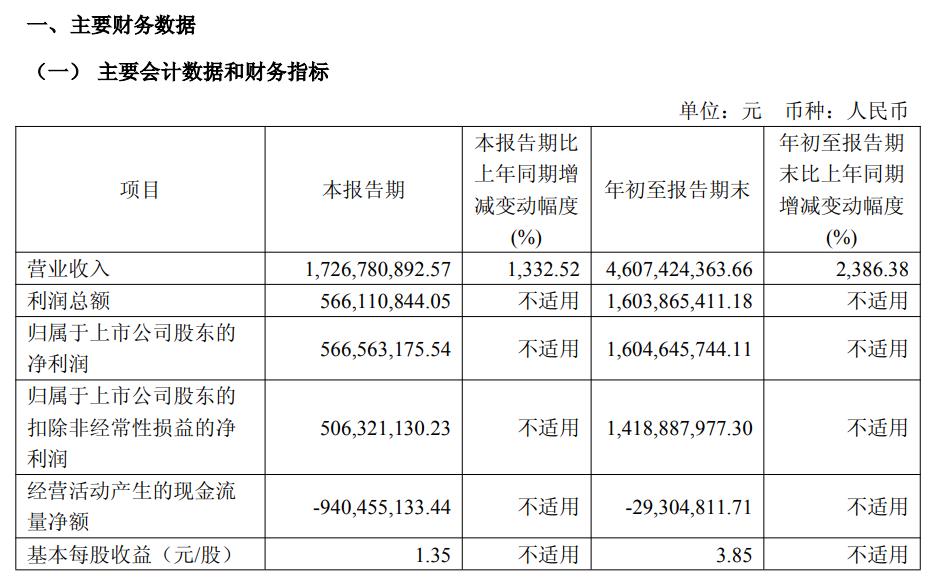 寒武纪:前三季度归母净利润16亿元 第三季度净利润5.67亿元 K 线图 特色数据 资金流向 公告 个股日历 核心题材 ![]() ![]() 最新价:1247.68 涨跌额:-26.32 涨跌幅:-2.07% 成交量:8.48万手 成交额:106亿 换手率:2.03% 市盈率:243.96 总市值:5220亿 查询该股行情 实时资金流向 深度数据揭秘 进入寒武纪-U吧 寒武纪-U资金流 专业金融数据,下一代智能终端 寒武纪10月17日公告,2025年第三季度实现营业收入17.27亿元,同比增长1,332.52%;归属于上市公司股东的净利润5.67亿元;基本每股收益1.35元。前三季度实现营业收入46.07亿元,同比增长2,386.38%;归属于上市公司股东的净利润16.05亿元;基本每股收益3.85元。 ![]()