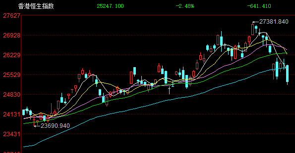 格隆汇10月17日|受多重因素影响,港股三大指数全天呈现单边下跌行情,恒生科技指数尾盘一度大跌至4.5%,最终收跌4.05%报5760点,恒生指数跌2.48%报25247点,国企指数跌2.67%险守9000点关口,三大指数齐刷近期调整新低。