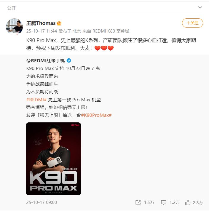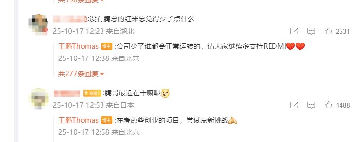 小米新任中国区市场部总经理 是她!王腾透露个人最新动态 在丁冬财经看资讯行情,选丁冬财经证券一站式开户交易>> 空缺一个多月的小米中国区市场部总经理人选有新消息。 10月17日晚,小米集团副总裁、CMO许斐在社交媒体平台公布小米10 月市场体系全员会的现场视频,在本次大会中,许斐称魏思琪为新任中国区市场部总经理。 ![]() ![]() ![]() 图片来源:许斐微博 查看魏思琪社交媒体账号,认证信息已显示为“小米手机市场部总经理,小米汽车市场部副总经理”。 ![]() 图片来源:魏思琪微博 值得注意的是,10月17日前小米高管王腾Thomas转发红米手机官方推文并表示:K90 Pro Max,史上最强的K系列,产研团队倾注了很多心血打造,值得大家期待,预祝下周发布顺利、大麦! ![]() 图片来源:王腾微博 随后,小米集团公关部总经理王化在该条博文评论区回复“拥抱”表情。王腾也回复比心表情。 ![]() 在评论区,有网友称“没有腾总的红米总觉得少了点什么”,王腾回应称“公司少了谁都会正常运转的,请大家继续多支持REDMI”;此外,王腾称最近“在考虑些创业的项目,尝试点新挑战”。 ![]() 另据杭州日报此前消息,10月15日,小米集团总裁、手机部总裁、小米品牌总经理卢伟冰开启直播再聊小米17。卢伟冰透露,截至昨晚,小米17整体销量比上代同比增长了20%。Pro系列的销量大概是上代的三倍。 他在返场直播中表示,小米下一代手机继续使用背屏设计,并将加大研发投入。 9月27日上午10点,小米17系列正式开售。价格方面,小米17起售价4499元,17Pro起售价4999元,小米17Pro Max起售价5999元。据小米手机官方微博消息,小米17全系开售5分钟,刷新了2025年国产手机全价位段新机系列首销全天销量、销额纪录。 每日经济新闻综合杭州日报、许斐微博、魏思琪微博、王腾微博 (文章来源:每日经济新闻) |